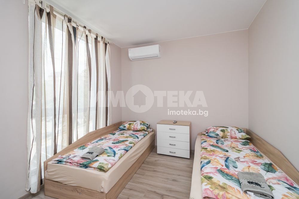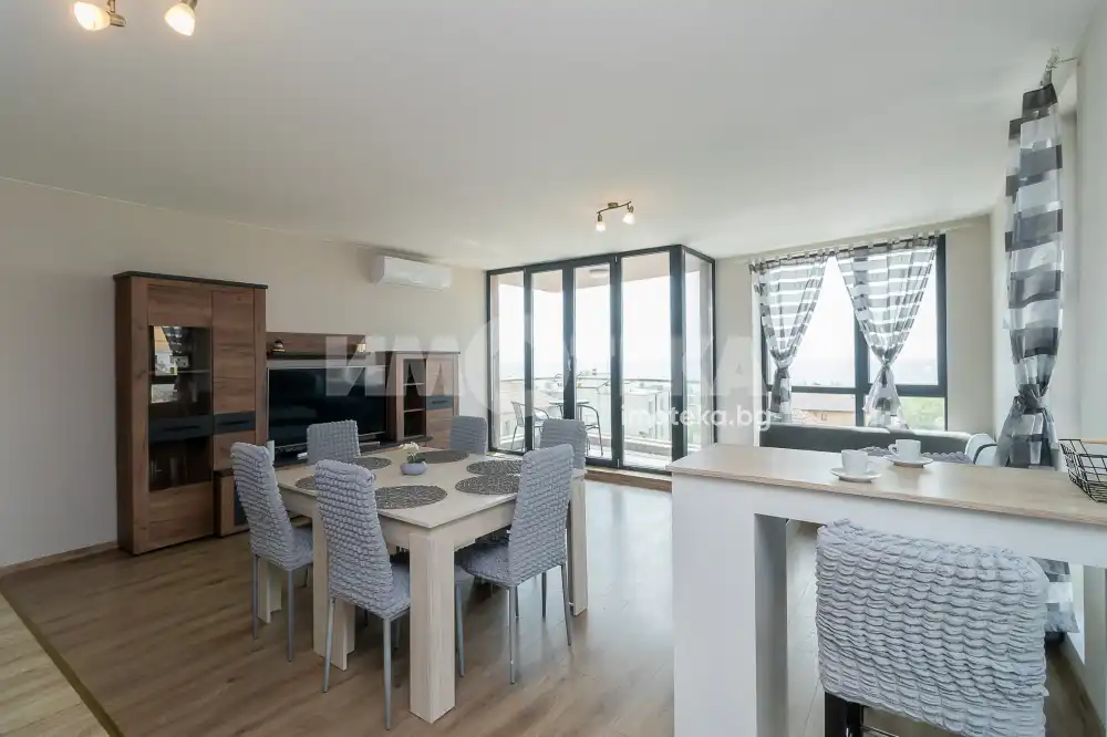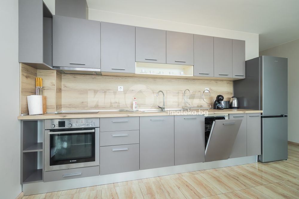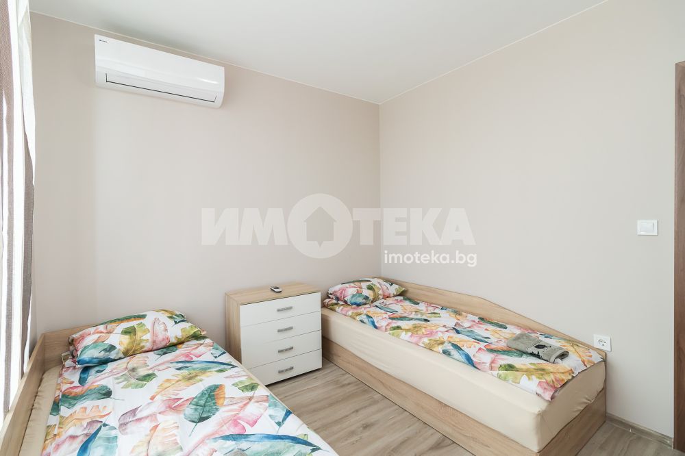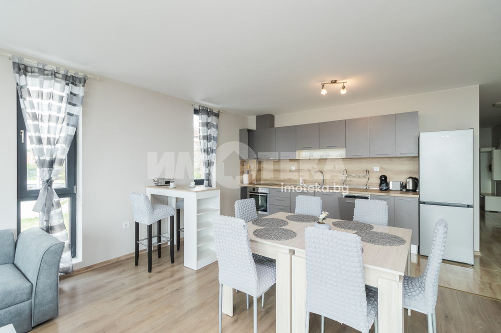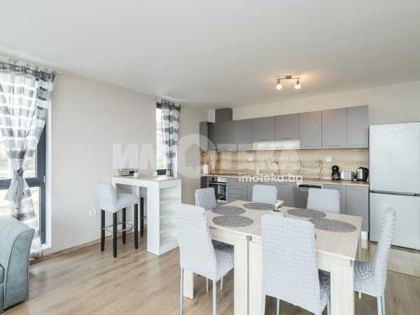 Тристаен, обзаведен апартамент с морска панорама. Жилището се предлага напълно обзаведено и оборудвано. Състои се от просторна, южна дневна с мека мебел, кухненска част /съдомиялна/, тераса с гледка към морето Две спални, баня с тоалетна. Три климатика. Към жилището има паркомясто. Отдава се дългосрочно.