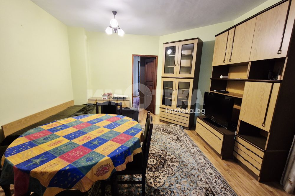Предлагаме Ви двустаена, обзаведен апартамент в района на Чаталджа и Спортна зала. Жилището се състои от дневна с кухененска част - бяла техника, маса за хранене, легло, секция, остъклена тераса, климатик. Преходна спалня - легло, гардероб и тераса. Баня с тоалет.