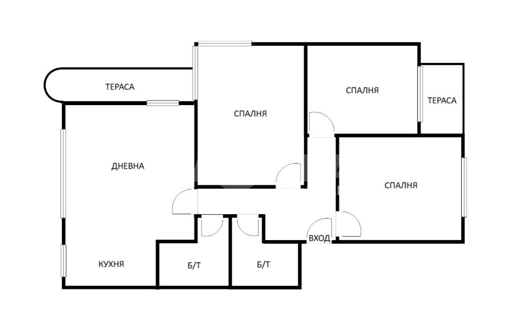 Три самостоятелни спални, дневен тракт с кухня, две сервизни помещения, две остъклени тераси. Апартаментът е изцяло освежен и подготвен да бъде довършен по проект на бъдещите собственици - стени и тавани с гипсокартон, сменени ел. и ВиК инсталации, сменена дограма! Светлите помещения и изложението създават усещане за простор и топлина.