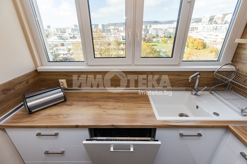 Хол, спалня и кухня в кв. Чайка. Жилището се предлага с напълно оборудвана кухня, хол с мека мебел, спалня - обзаведена, баня с тоалет, килер. Тераса. Целият апартамент е с изолация, висок клас климатици.