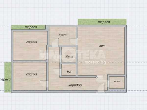 Сервизни помещения: Баня, отделна тоалетна, килер и широк коридор.