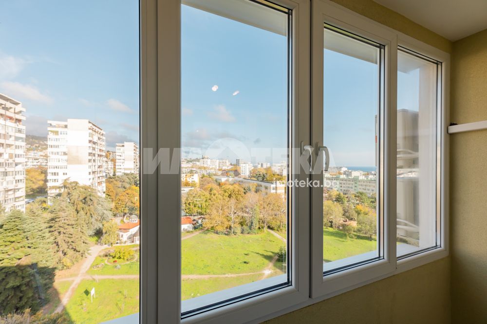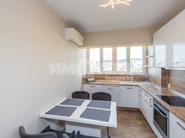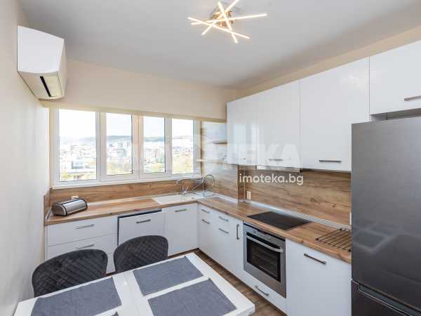 Хол, спалня и кухня в кв. Чайка. Жилището се предлага с напълно оборудвана кухня, хол с мека мебел, спалня - обзаведена, баня с тоалет, килер. Тераса. Целият апартамент е с изолация, висок клас климатици.