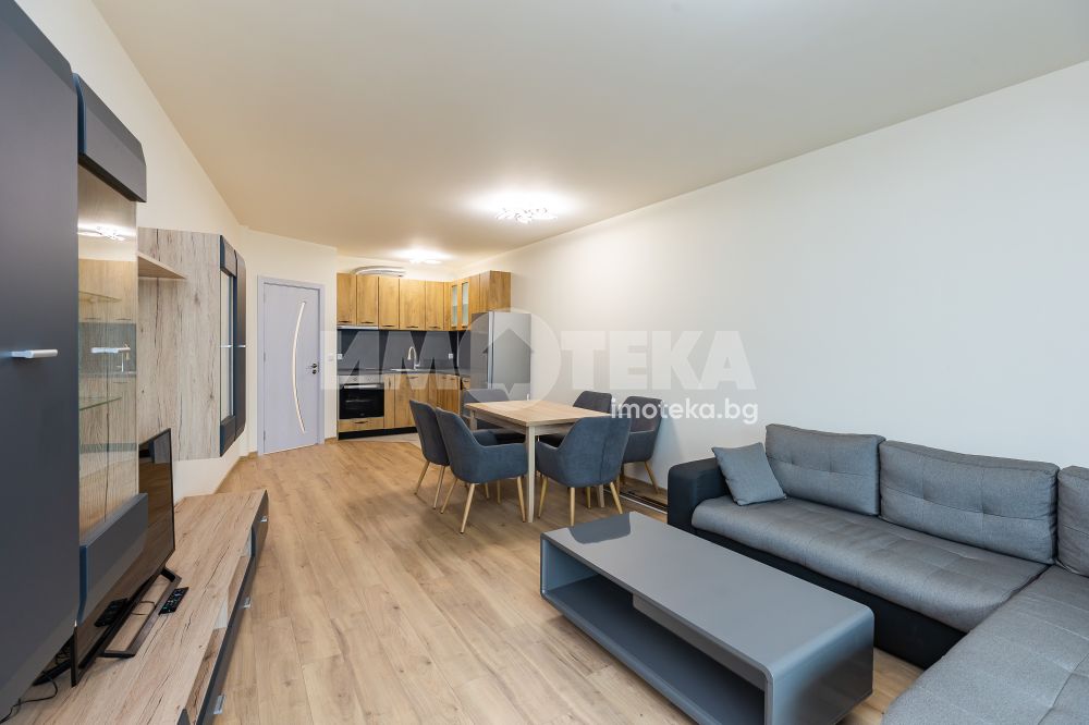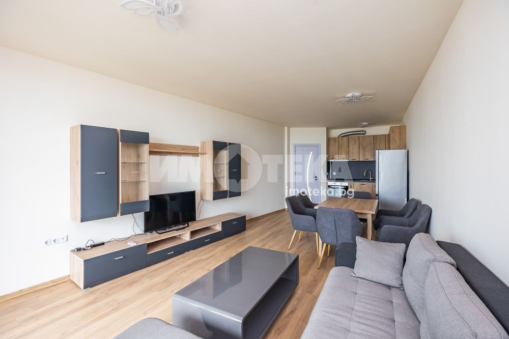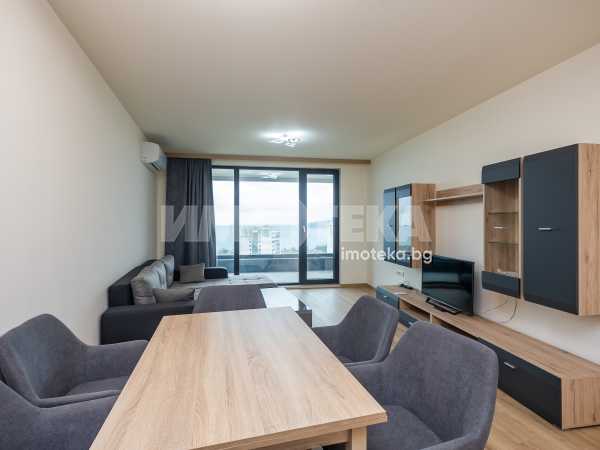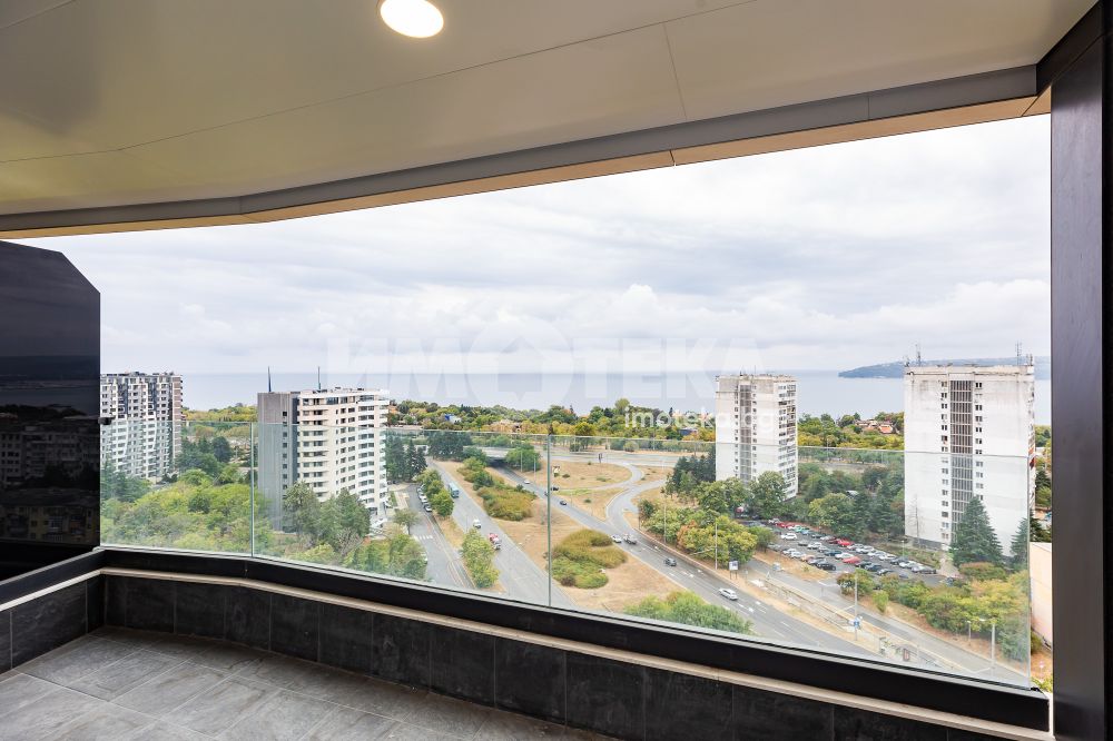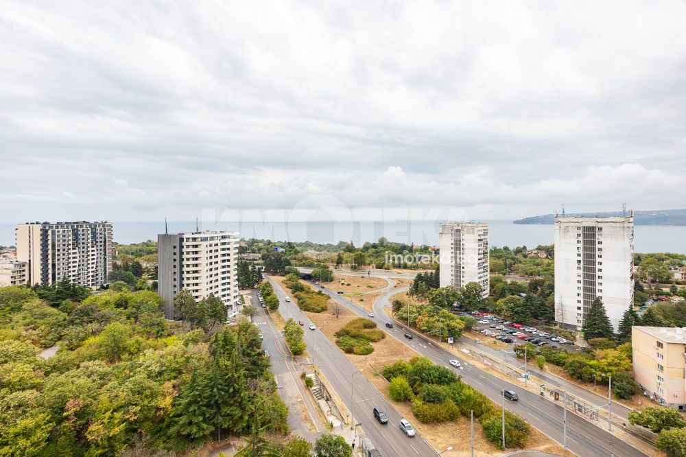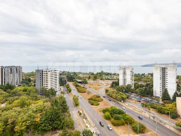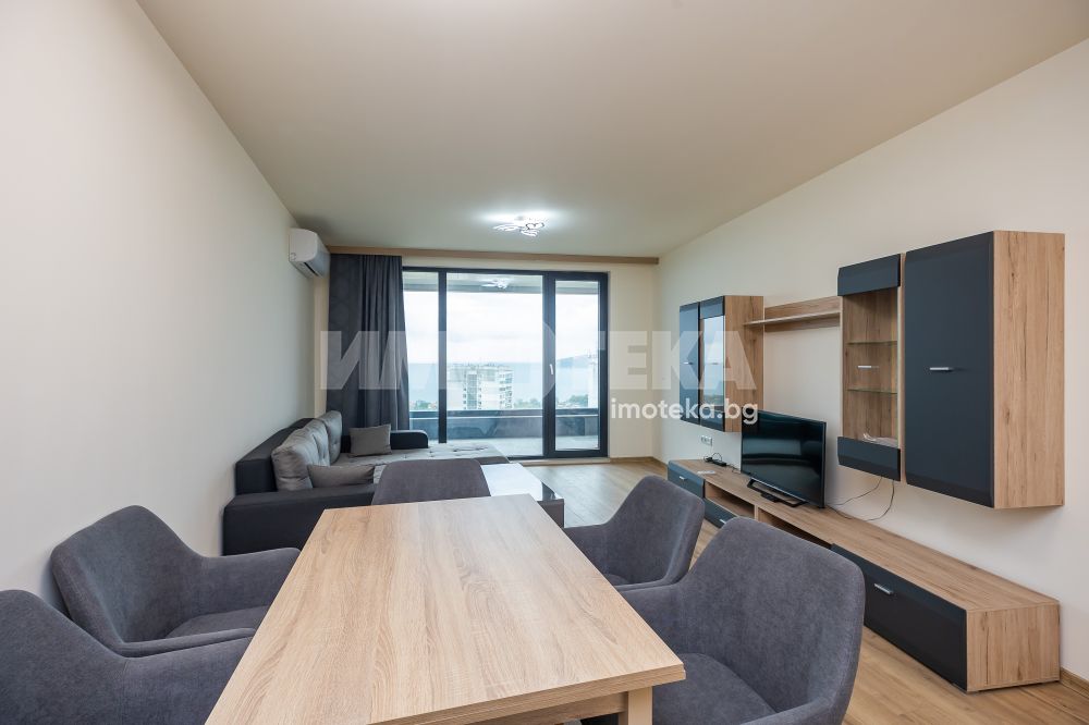 Тристаен апартамент с включено паркомясто в цената. Дневна с обособена кухненска част и част за отдих. Разтегателен диван в дневната. Родителска спалня, детска стая. Баня с тоалетна, втора тоалетна. Впечатляваща морска панорама! Напълно обзаведен с нови мебели и електроуреди, три климатика.