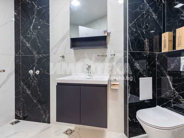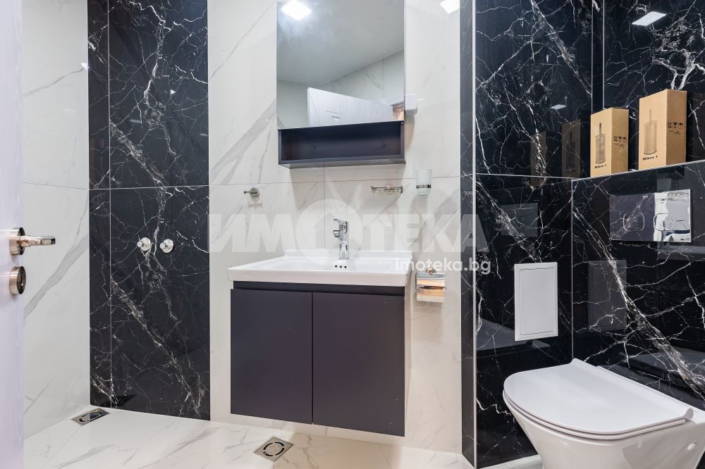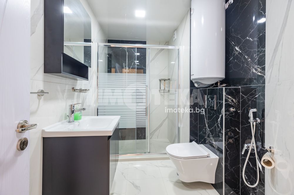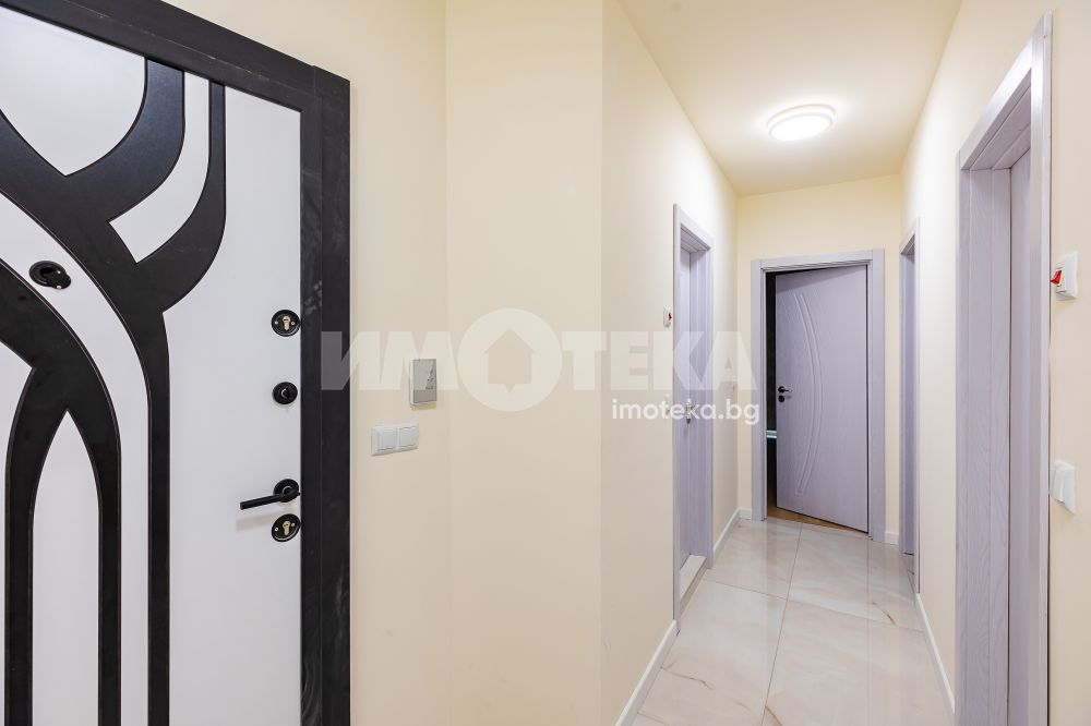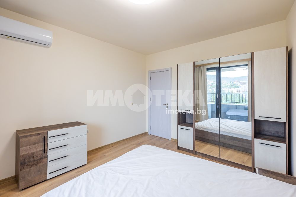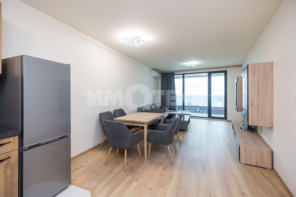 Тристаен апартамент с включено паркомясто в цената. Дневна с обособена кухненска част и част за отдих. Разтегателен диван в дневната. Родителска спалня, детска стая. Баня с тоалетна, втора тоалетна. Впечатляваща морска панорама! Напълно обзаведен с нови мебели и електроуреди, три климатика.