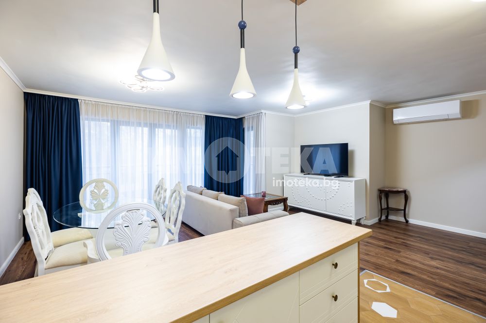 Тристаен, луксозно обзаведен апартамент под наем в кв. Чайка на метри от Морската градина. Жилището се отдава за пръв път, напълно обзаведено и оборудвано, готово за настаняване. Състои се от: входно антре, огромна дневна с просторна кухня оборудван вкл. и съдомиялна, родителска спалня със собствен дрешник, детска спалня, килер (пералня и сушилня), ДВЕ бани с тоалет и малка тераса. Климатик във всяка стая. Към наемната цена е включено ползването на една ГАРАЖНА КЛЕТКА с лесен достъп до нея.
