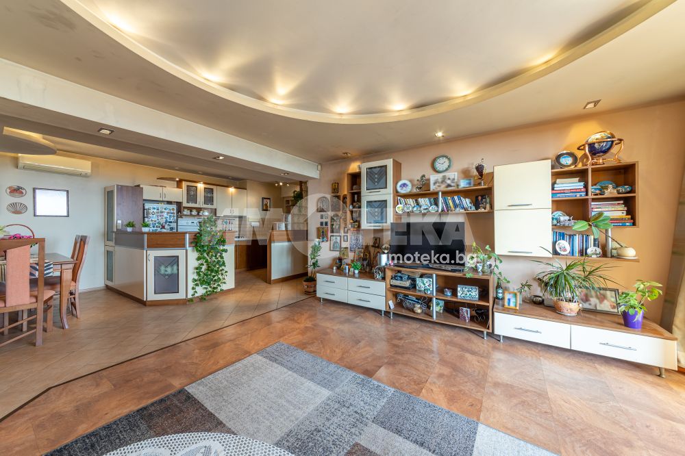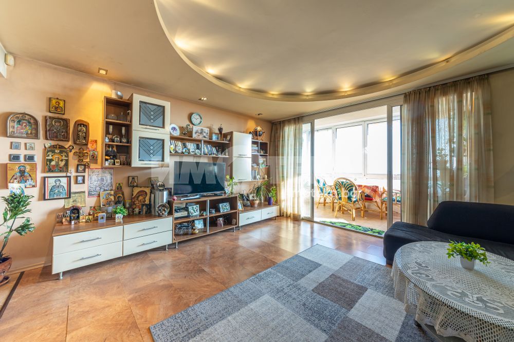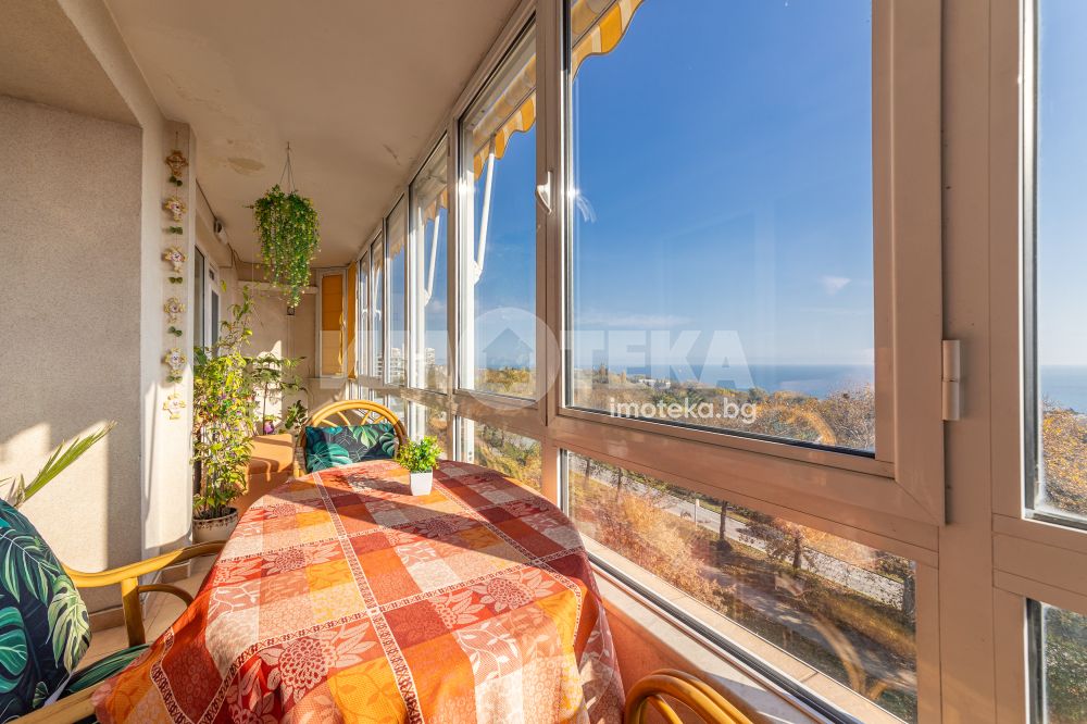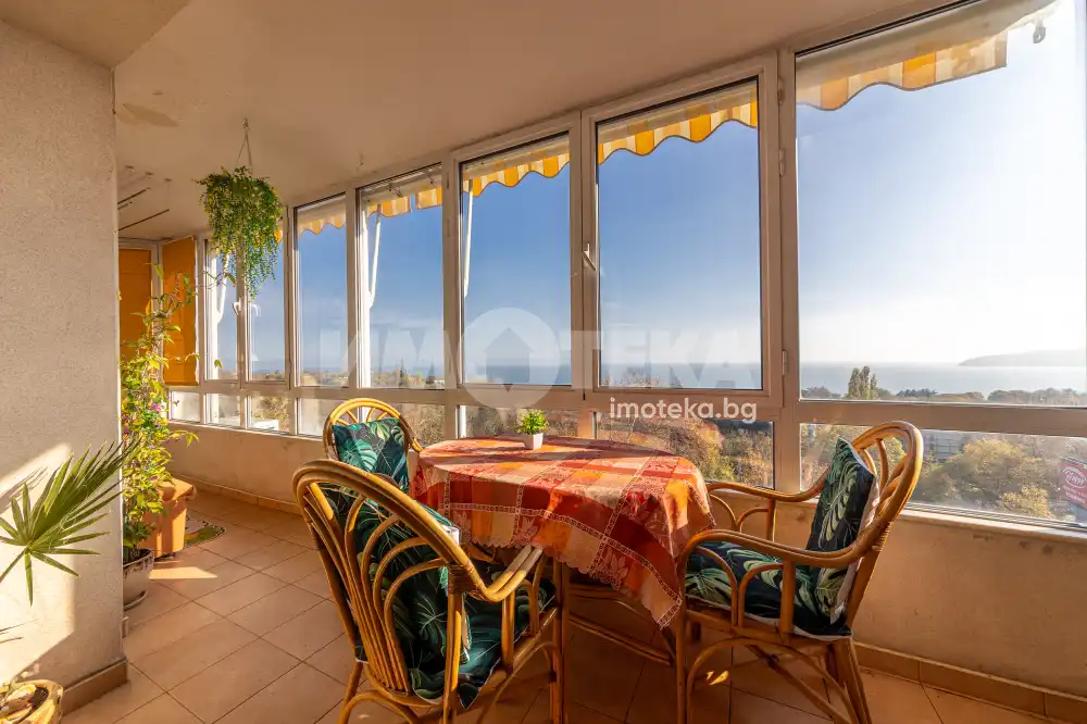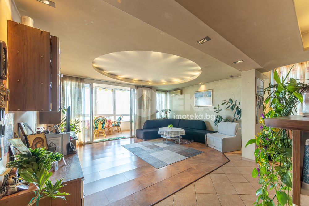 Предлагаме за продажба просторен и светъл тристаен апартамент, напълно обзаведен, с обща площ 124 кв.м, разположен на седми етаж в осеметажна сграда, в непосредствена близост до Морската градина.