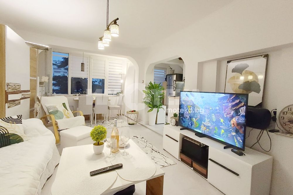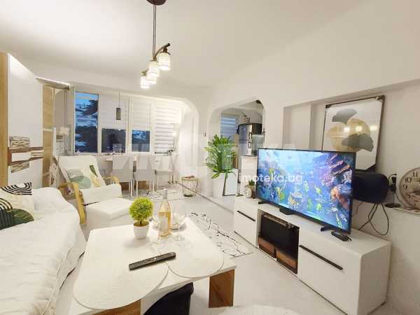 Имотека представя разкошен,светъл тристаен ТУХЛЕН апартамент в кв. Чайка, ет.4 в 7- етажна сграда с асансьор. Разпределение: просторна дневна с кухненски бокс с обща площ 33 м2, две спални по 12 м2, баня и тоалет отделно, килер. Прилежащо избено помещение 6 м2. Апартаментът е среден, без крайни стени, с изложение: югоизток - северозапад с голяма обща тераса пред спалните, слънчев през целия ден, уютен и топъл. Жилището е след основен ремонт, сменени са ВиК и Ел инсталации, със съвременно обзавеждане, качествени настилки и техника. МАСИВНО здраво строителство, доказало се във времето. Сградата е с добре поддържани общи части, разположена в район с денонощно СВОБОДНИ паркоместа, в близост до елитни гимназии, Хипермаркети като Кауфланд, Билла, Бурлекс, заведения, банки, денонощни магазини. Имотът е на пешеходно разстояние до морската градина и морския бряг. Подходящ е както за нов семеен дом, така и за краткосрочен и дългосрочен наем. Продава се във вида от снимките, с наличното обзавеждане. Подходящ е за клиенти, ценители на кв. Чайка, инфраструктура, зеленина,удобства, добри съседи ,състояние на жилището и общите части на входа, здравина на конструкцията и други важни параметри при покупка на жилище