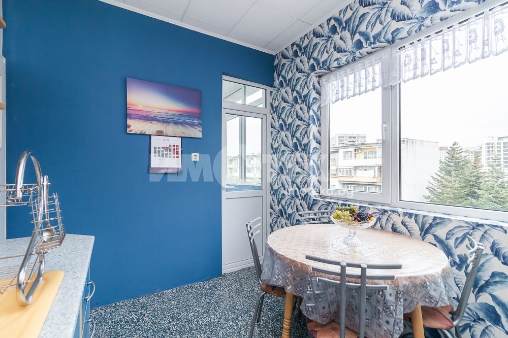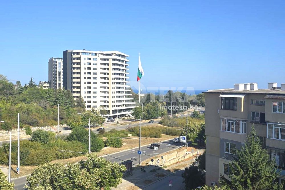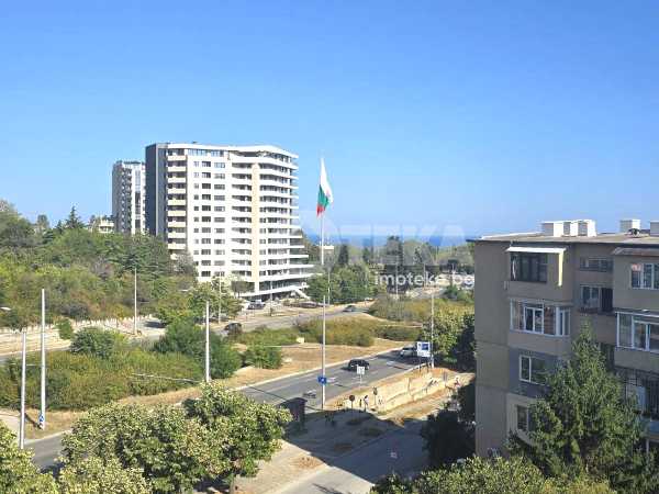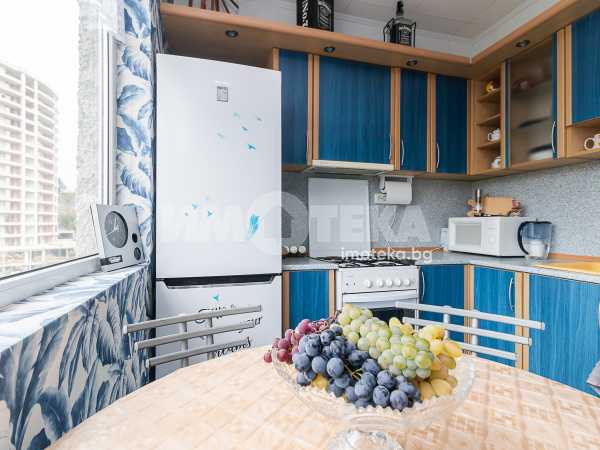 Предлагаме Ви обзаведен апартамент с две спални. Жилището е просторно и светло, като се състои от - кухня /бяла техника/, дневна с мека мебел, секция и холна маса, две спални - обзаведени. Баня. Тоалетна. Перално помещение. Жилището разполага с две тераси, като едната е с гледка към морето. Топъл и уютен, тристаен апартамент.