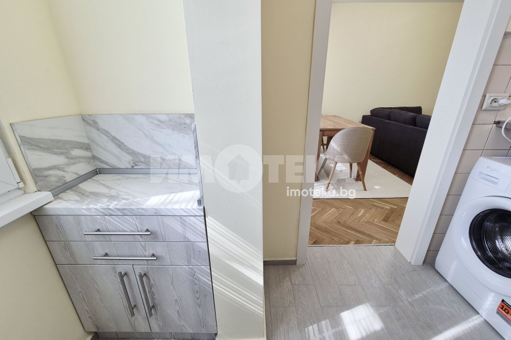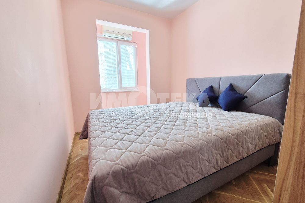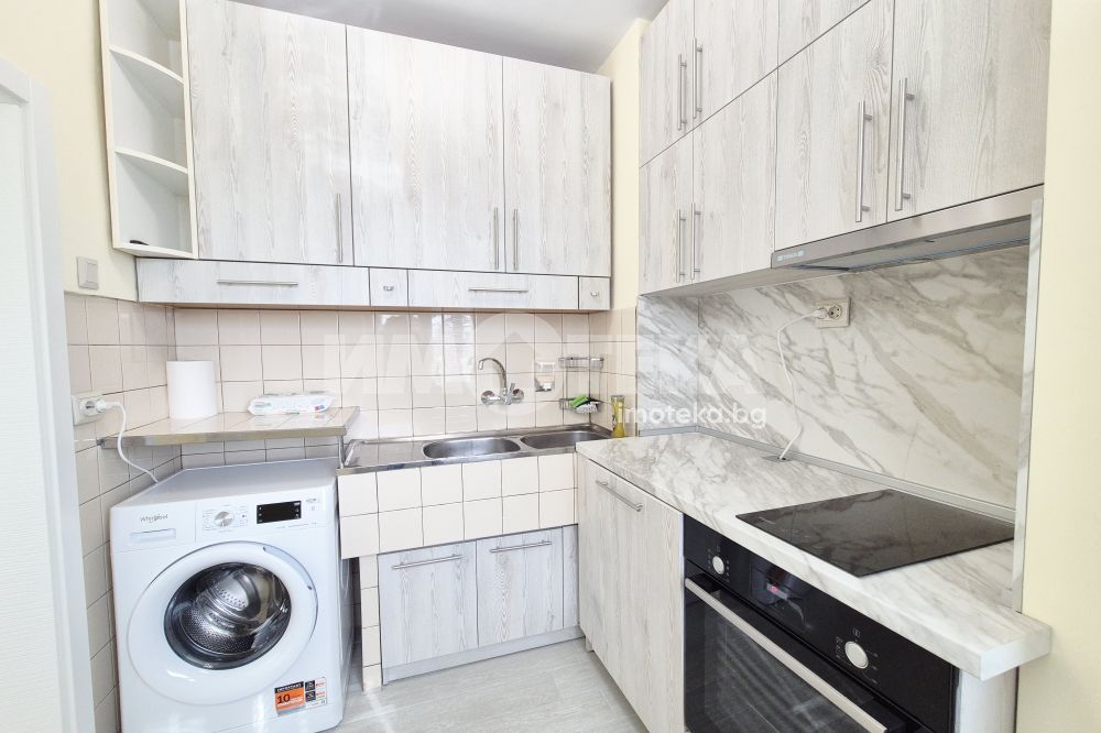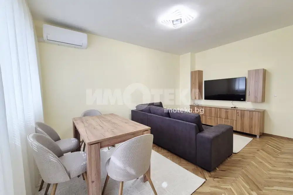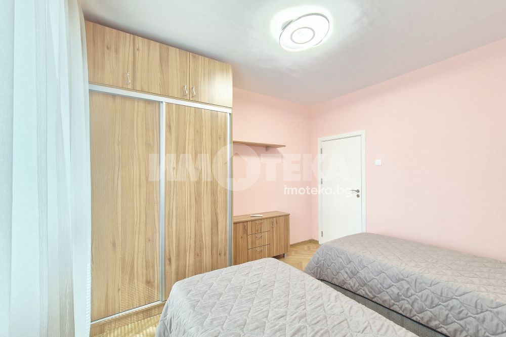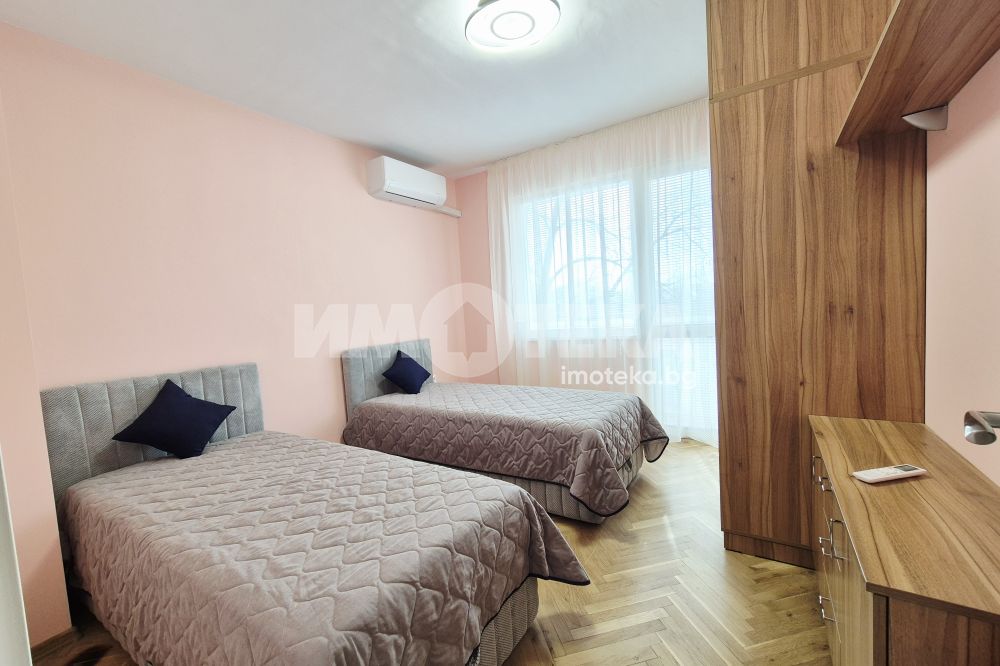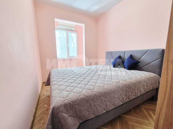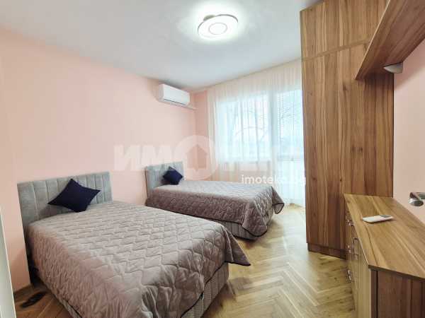 Тристаен, семеен апартамент в близост до Морската градина. Жилището е след ремонт и със следното разпределение: дневна с кухненска част - мека мебел, бяла техника вкл. съдомиялна, остъклена тераса, спалня - голямо легло, гардероб; втора спалня - две единични легла, гардероб, остъклена тераса. Баня, тоалет, килер. Три климатика.