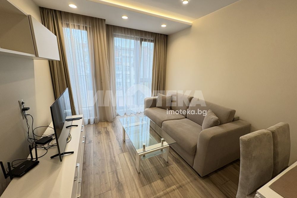 Уютен двустаен апартамент под наем на Червения площад. Разположен ан 5-ти етаж в нова, модерна срада. Състои се от: дневна с кухня, спланя, баня-тоалет, входно антре с място за багаж и две тераси. Апартаментът е оборудван с пералня със сушилня, съдомиялна и климатик във всяка стая. Има възможност за използване на интернет и телевизия. Съдействие за зона. Отдава се дългосрочно, огледи с ключ!