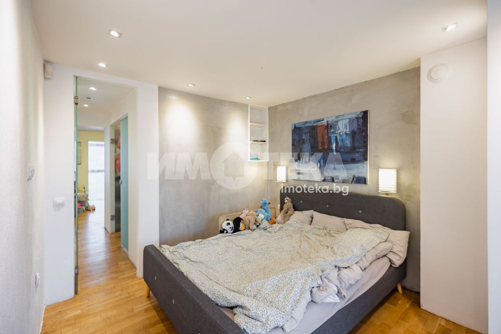Тристаен апартамент в района на "Генералите". Жилището е с чиста площ от 118.45 кв.м. и се състои от просторен дневен тракт с обособена кухненска част с вградена кухня, трапезария и холна част с мека мебел, спалня с дрешник, баня с тоалет, коридор и обширна тераса с излаз от всички стаи. Втората спалня в момента е присъединена към дневната, която се получава с площ 60 кв.м. Апартаментът се предлага отлично завършен и обзаведен. Висок клас на довършителните работи, мебели и уреди.