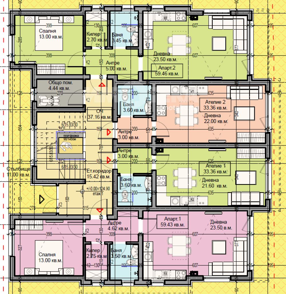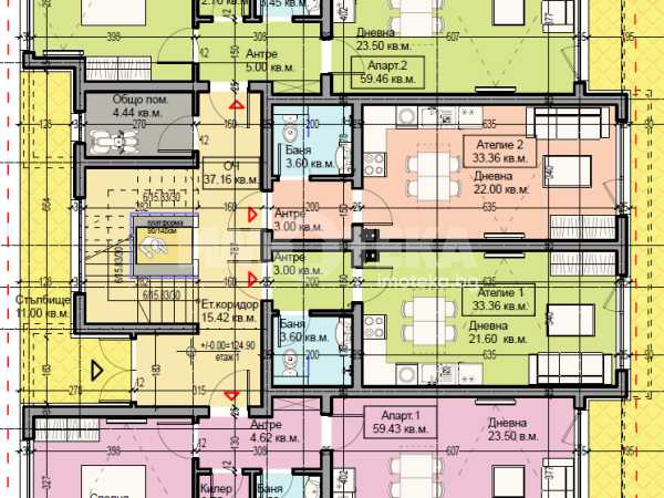 Сградата е 5-етажна с асансьор. Има издаден Акт 14, в момента се поставя топлоизолация на фасадата, отвътре сградата е готова.