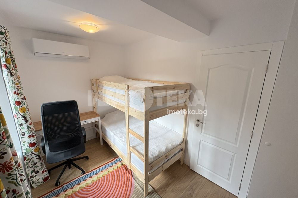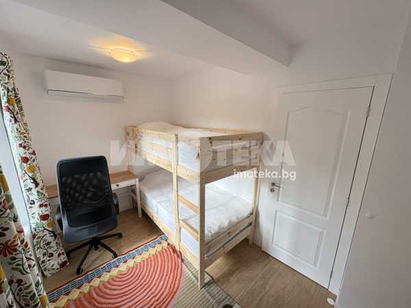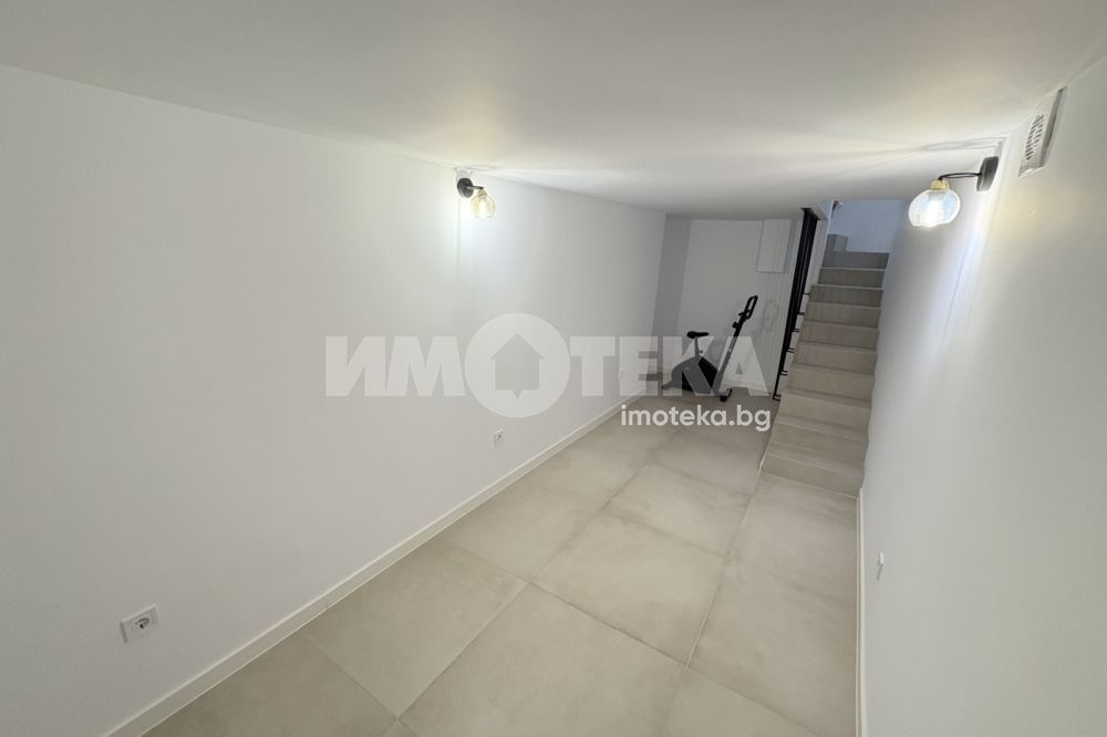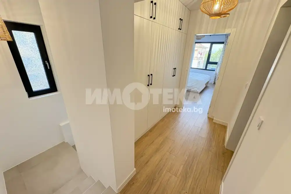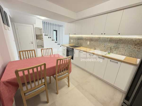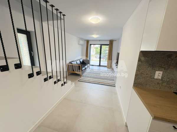 Предлагам за продажба уникален мезонет с усещане на къща. Имота е със следното разпределение: На партерно ниво със самостоятелен вход се влиза в дневният трак, разпределен на кухня с трапезария, хол, помощни помещения. Второ ниво две спални със санитарен възел. В сутерена може да се обособи помещение за забавление. Фитнес, кино, стая за гости .... Към жилището има малък двор с право на ползване. Прекрасно обзаведен в средиземноморски стил. Може да се наеме и паркомясто!