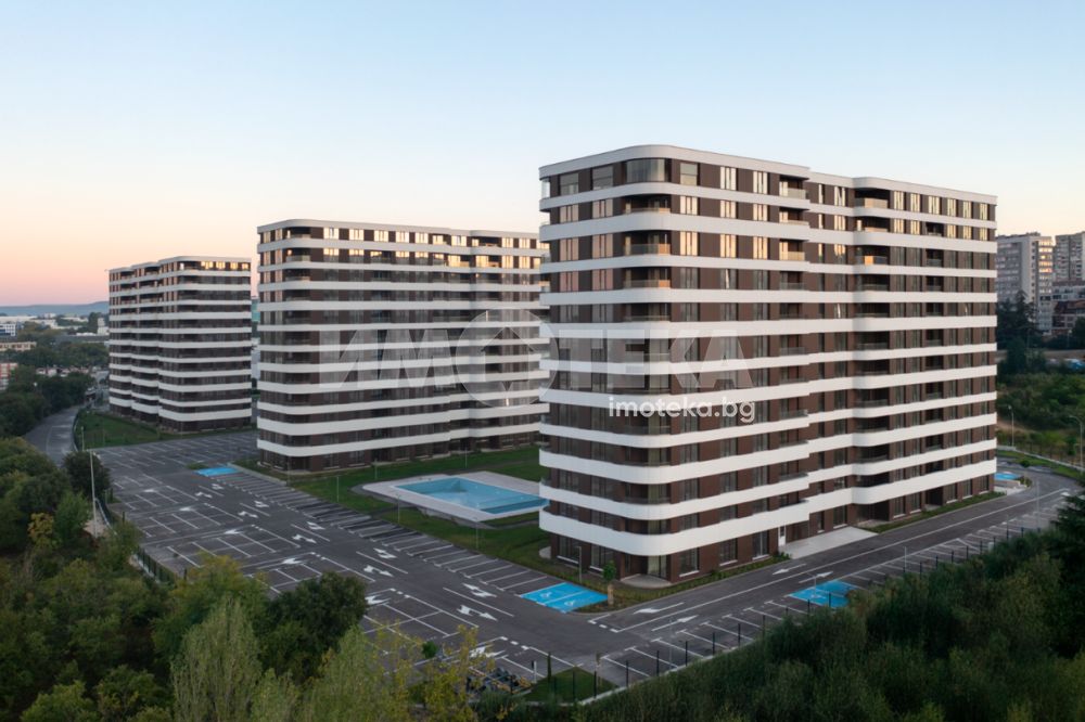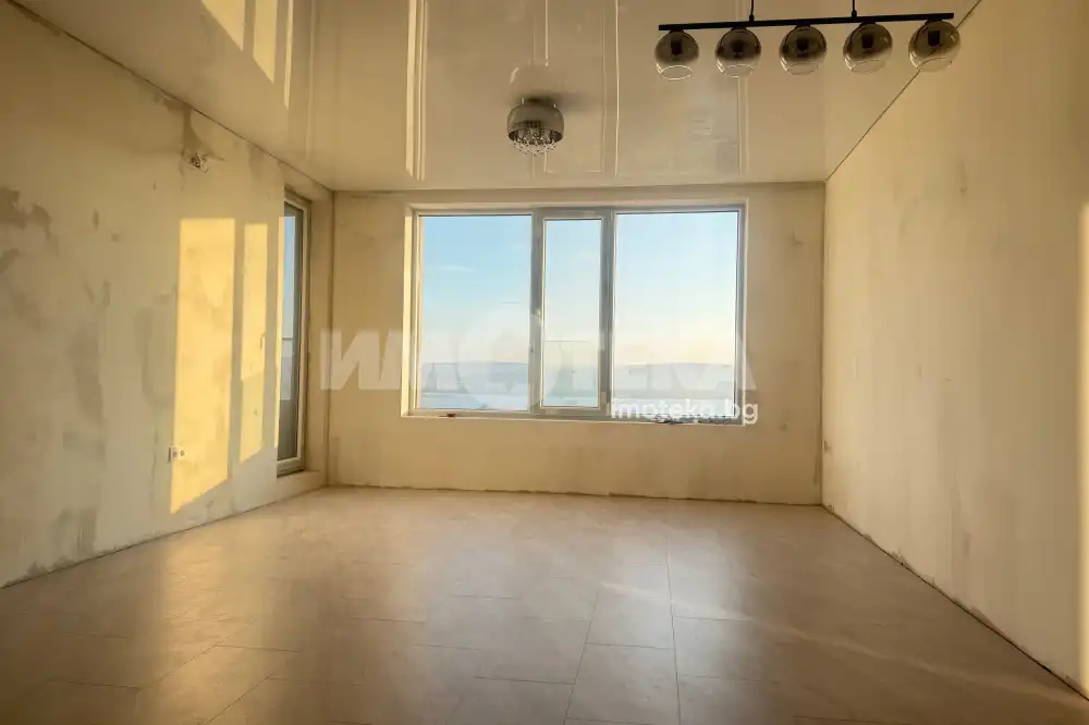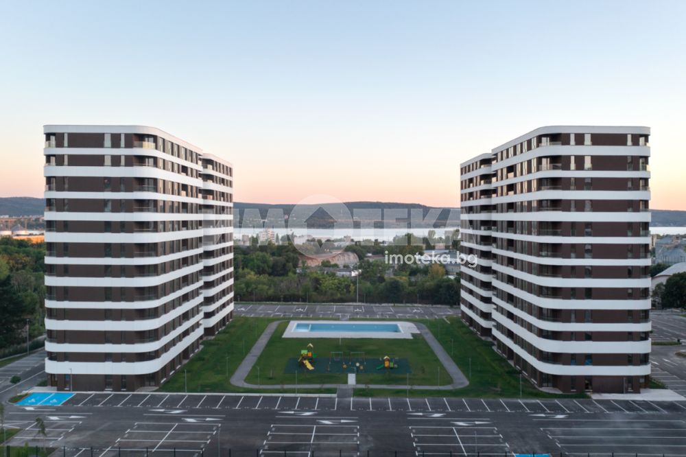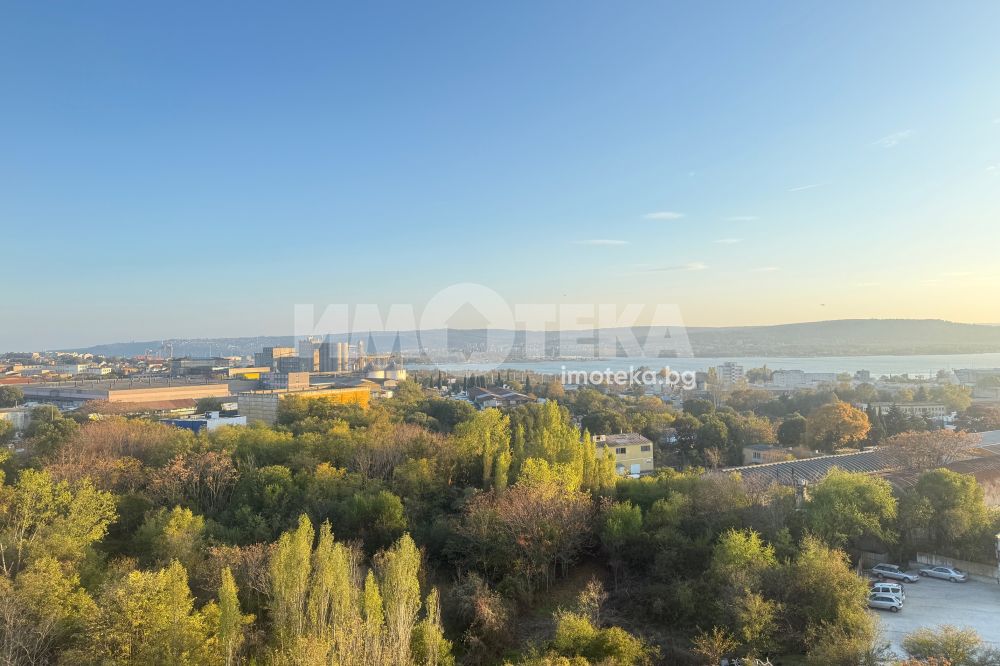 Тристаен апартамент, разположен на висок етаж, с много приятна гледка към Варненския залив и езеро. Жилището е с площ 110 м2 сред 20000 м2 зелен парк, с контрол на достъпа, минерален басейн, детска площадка.