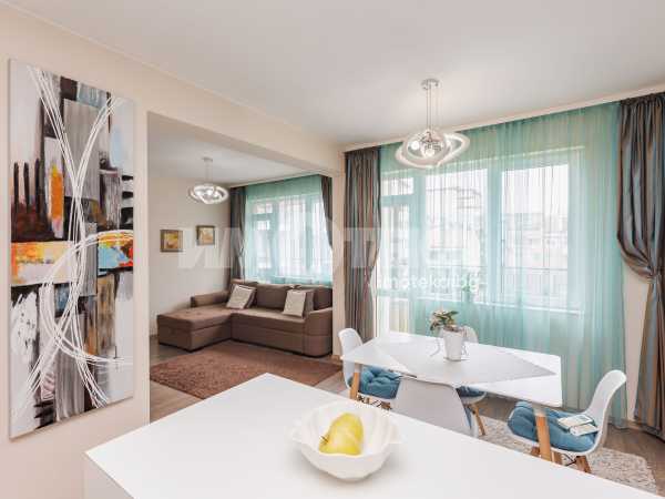 Предлагаме ексклузивно отличен тристаен апартамент с паркомясто.Имотът е с "чиста" жилищна площ 102,70 кв.м разпределена в : слънчева, просторна дневна с обособени кухня-трапезария и кът с мека мебел ; две големи спални , комбиниран санитарен възел и две тераси.Имотът е отлично подържан, обзаведен и оборудван. В продажната цена е включено и паркомясто в подземен паркинг с рампа.