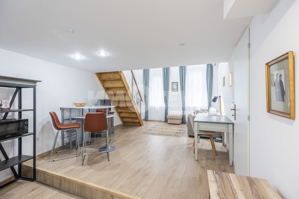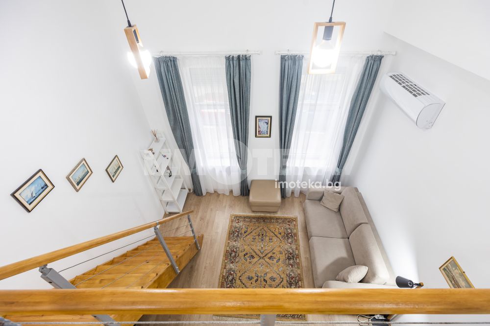 Многостаен просторен и аристократичен имот, безупречно състояние, находящ се в Гръцката махала. Жилището е изцяло отремонтирано, обзаведено и оборудвано, с големи стаи, високи тавани - 3 м и осигурен комфорт за ползвателя. Състои се от два самостоятелни етажа - единият - първи висок етаж, с вход от красив вътрешен двор, който разполага с антре, две дневни стаи, оборудвани с модерни кухни, холна и трапезарна част, две спални, две бани - стилно и качествено изпълнение. Има втори отделен вход, който позволява самостоятелен достъп до всеки от двата двустайни апартамента. Второто ниво, разположено под този етаж, разполага с естествена светлина и е студио с кухненска, холна и спална част, както и самостоятелна баня. Към имота има и самостоятелен гараж от нивото на улицата. Отлично предложение, както за собствено ползване от голямо семейство или две семейства, така и за отдаване под наем дългосрочно или на нощувки.