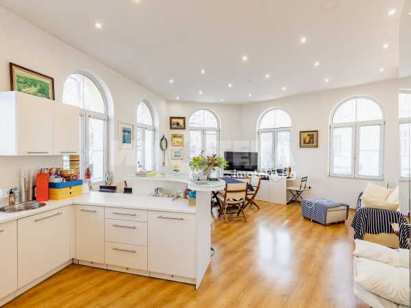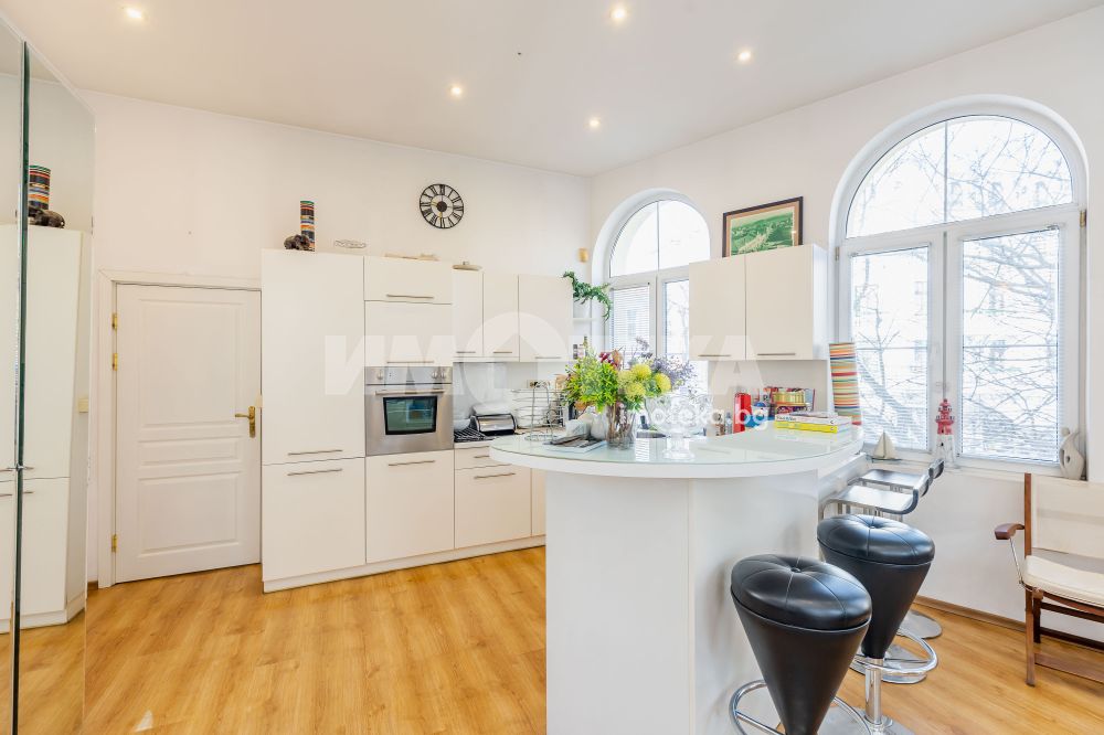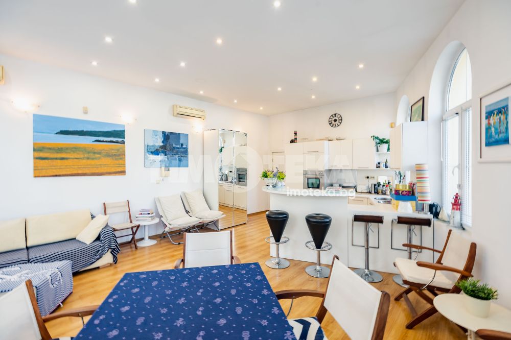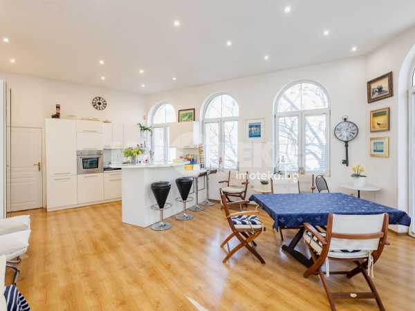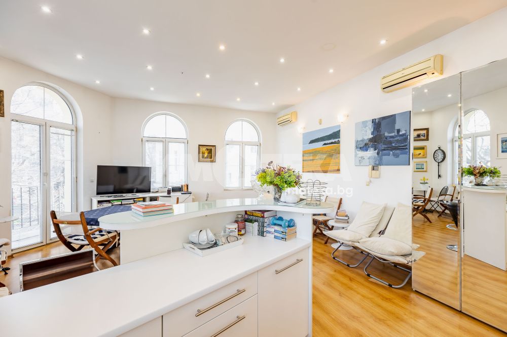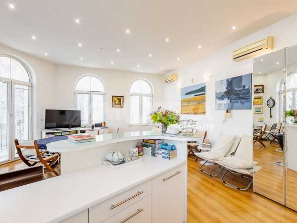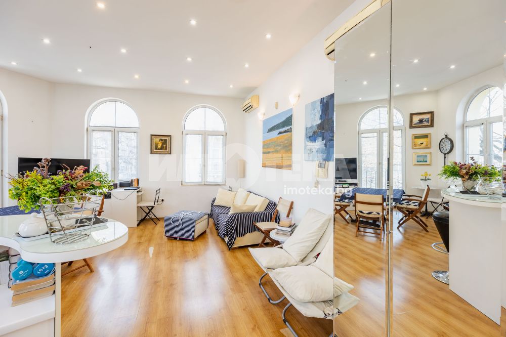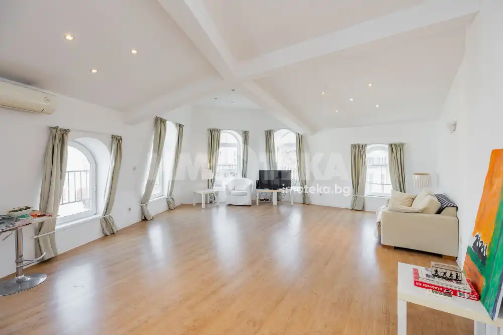 Характерно за имота са високите тавани, чийто обем вдъхновява и дава усещане за свобода и мащаб.
