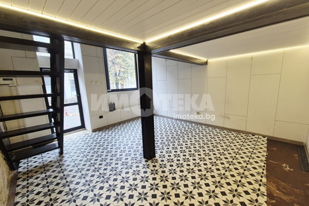 Предлагаме Ви партерно помещение с лице към оживена улица. Представлява партер, санитарен възел, вътрешни стълби към второ ниво и малък склад. Подходящо за фризиьорски салон, козметично студи, магазин, офис и т.н.
