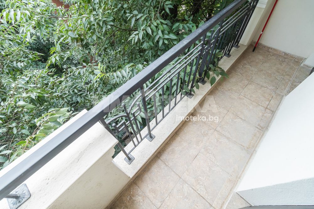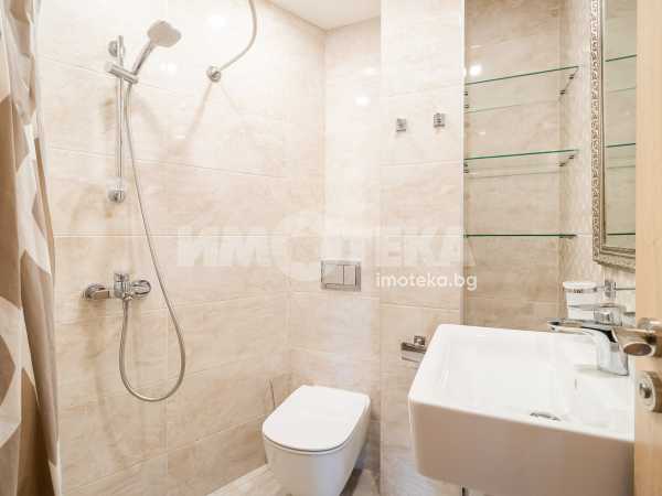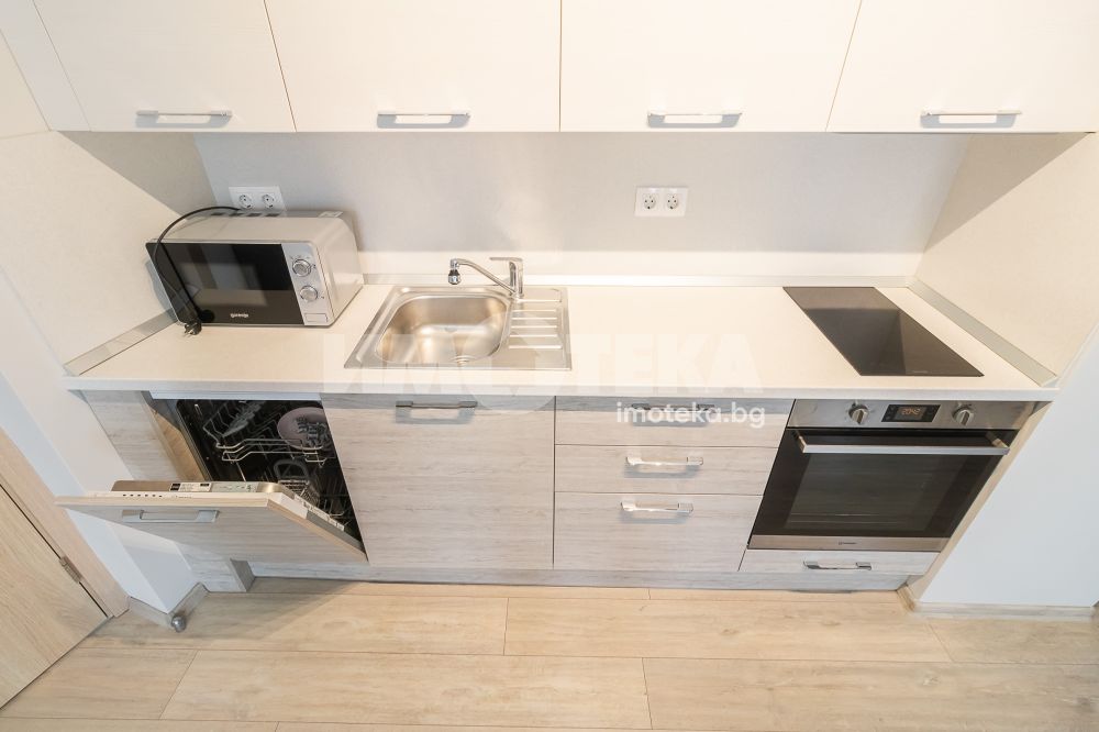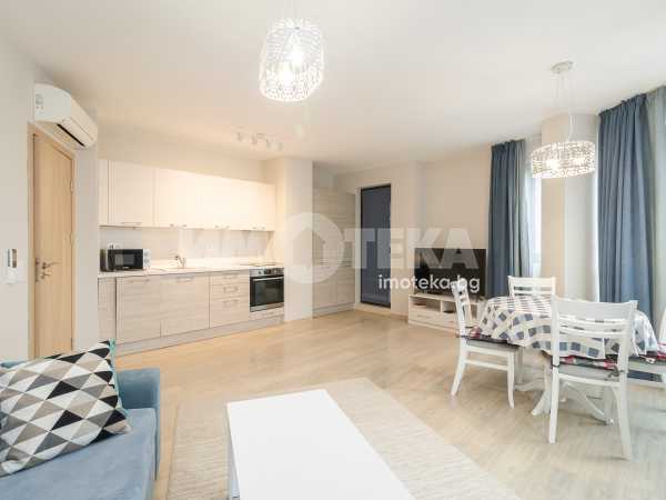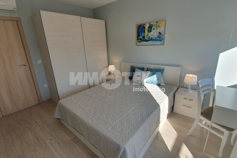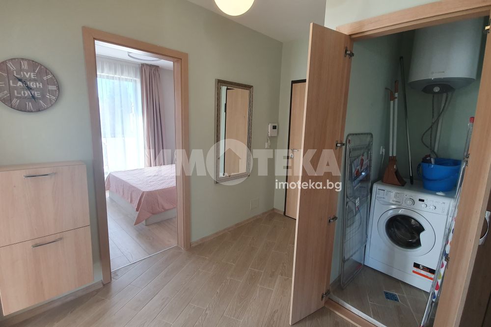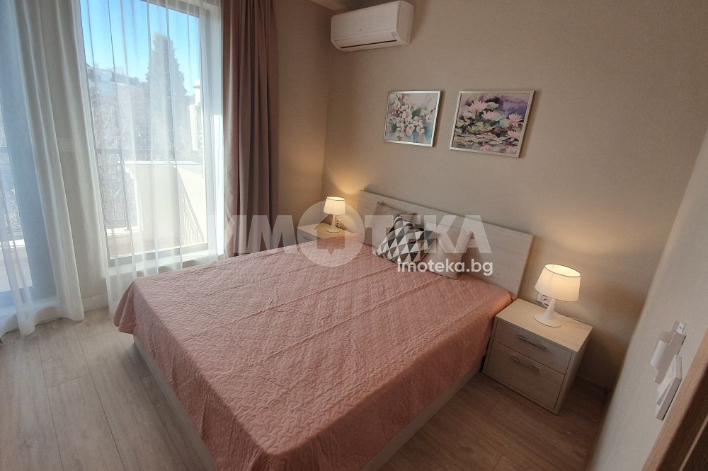 Състои се от слънчева и удобна дневна с вградена кухня , две спални (всяка от които с двойно легло, удобен гардероб, тоалетка), баня с тоалет и отделно още един санитарен възел, перално помещение, функционално входно антре.Имотът се отоплява с климатици от най-висок клас.