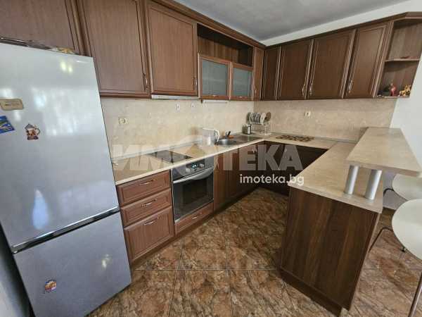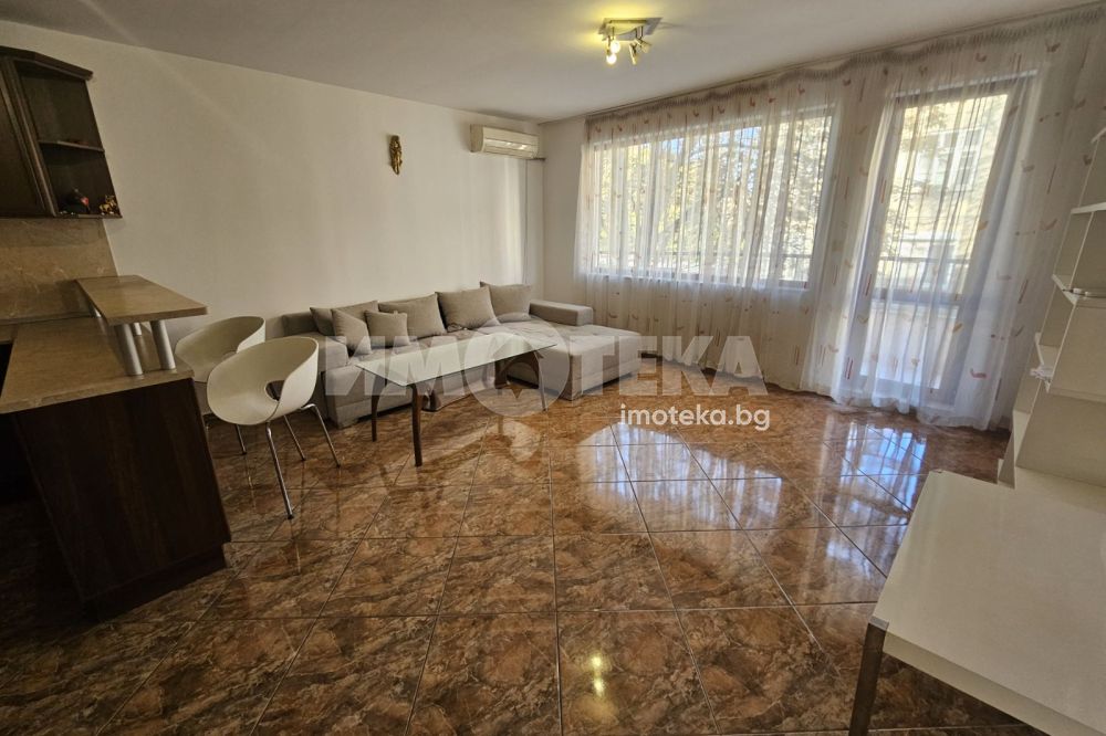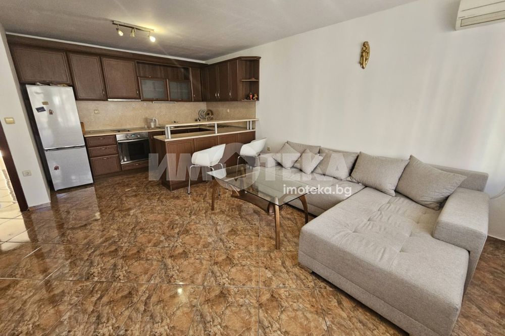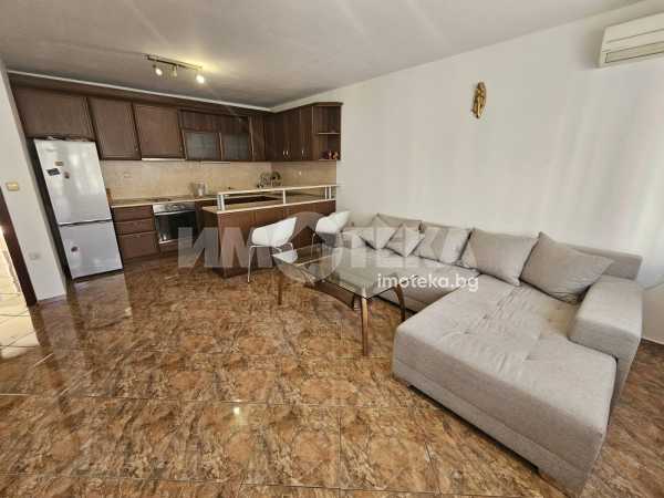Напълно обзаведен апартамент на метри от морето с ГАРАЖ. Жилището е изключително просторно и функционално. Състои се от дневна с кухненски бокс (напълно оборудван, мека мебел, маса за хранене, столове), две големи спални всяка от които с двойно легло и гардероби, бяна/тоалет заедно отделно перално перално помещение, широко входно антре, две открити тераси с излаз от всички стаи. В дневната и едната спалня са поставени климатици. Наемателите ползват гараж.