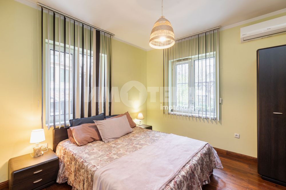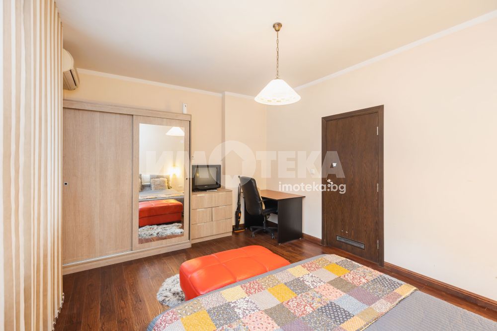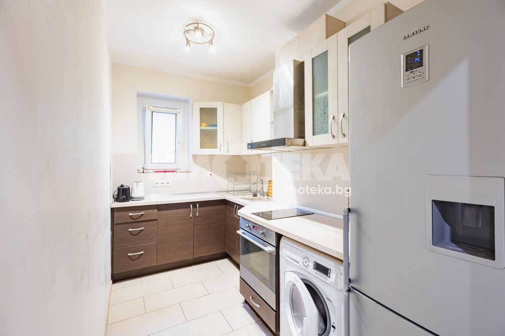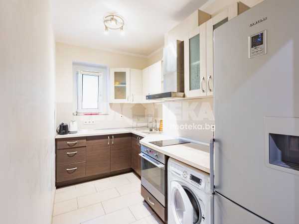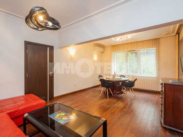 Просторен и функционален тристаен апартамент. Състои се от коридор, дневна, кухня, две спални, две сервизни помещения и две тераси. Имотът е напълно обзаведен. Сменени ел., ВиК, PVC дограма, положени са вътрешни и външни изолации. Климатици във всички стаи, подове - дъбов паркет и гранитогрес. Жилището е готово за нанасяне.