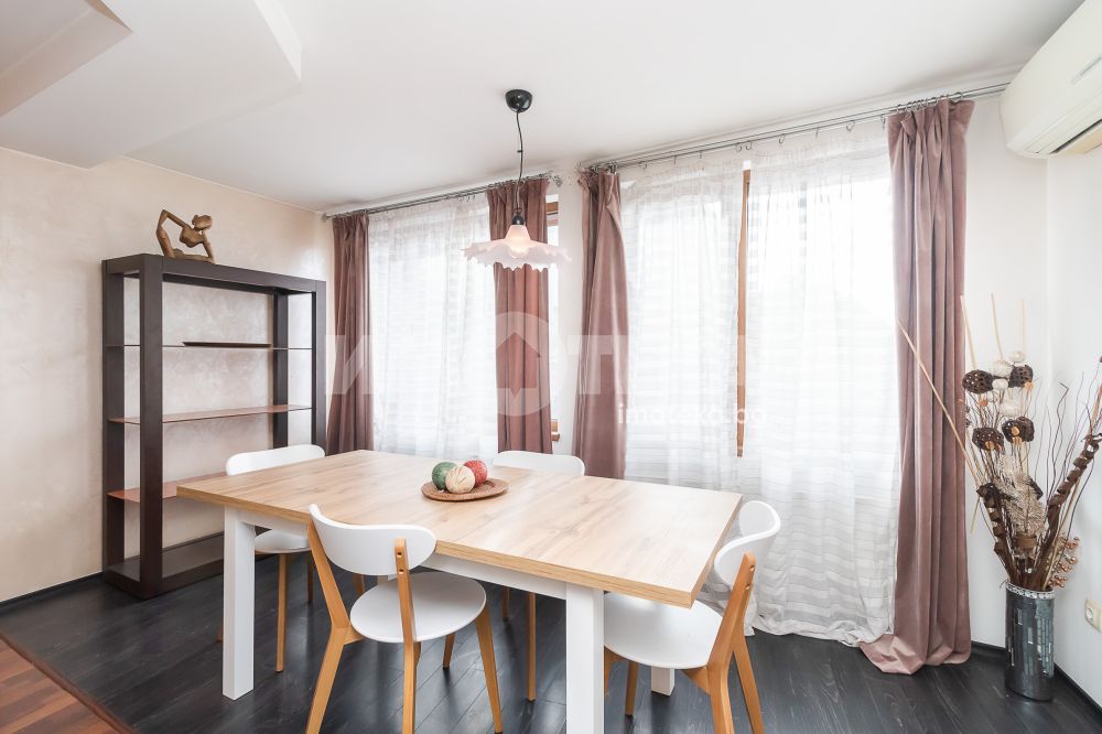 Тристаен, апартамент в гръцката махала, в близост до Морската градина, плажната ивица и центъра на града. Представлява светла дневна, две равнопоставени спални, санитарен възел, две тераси. Напълно обзаведен с много вкус.