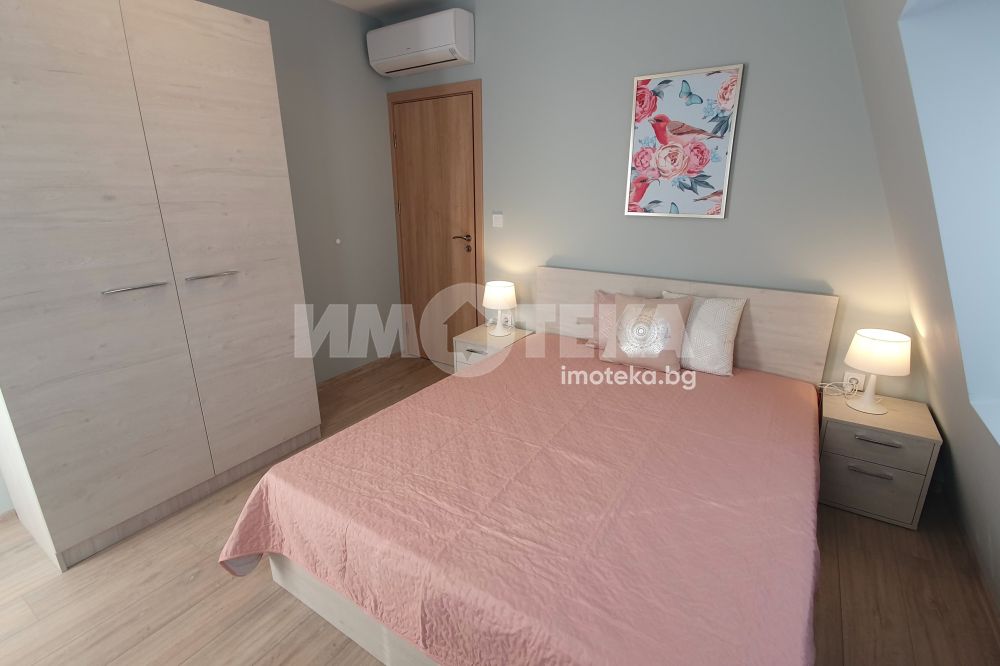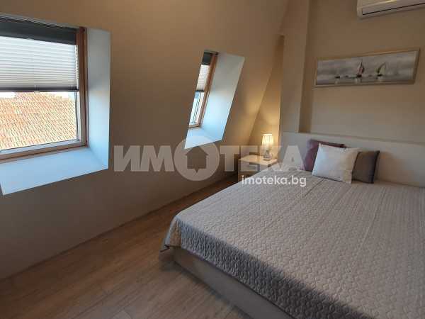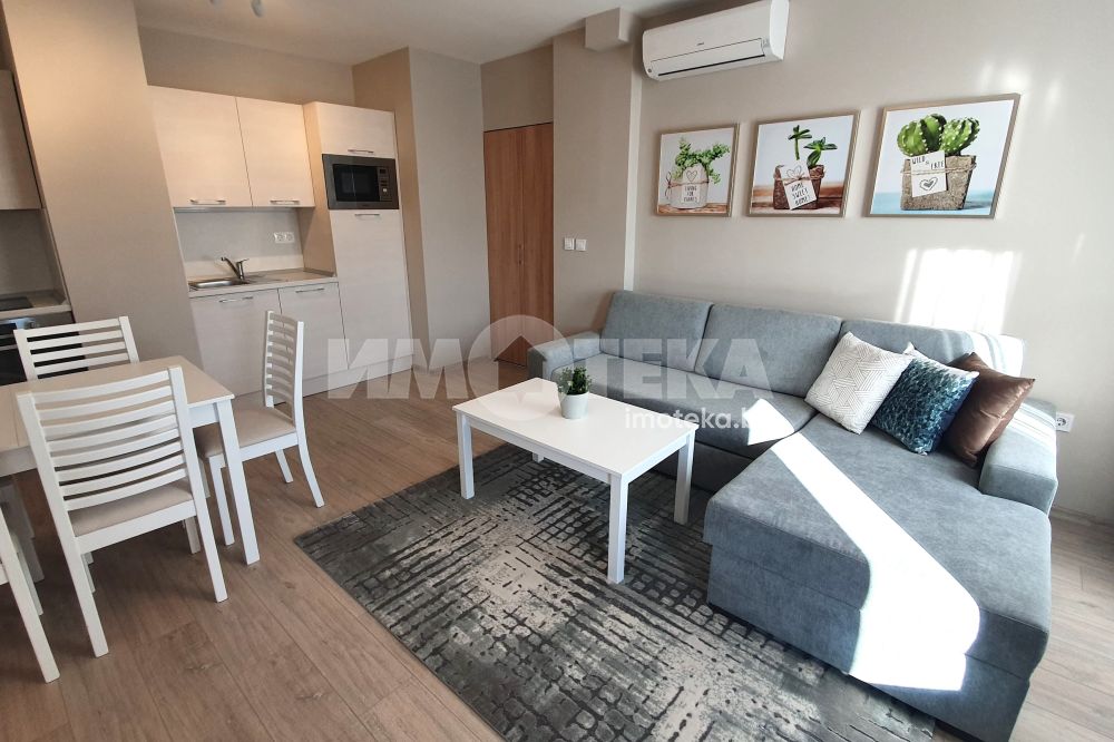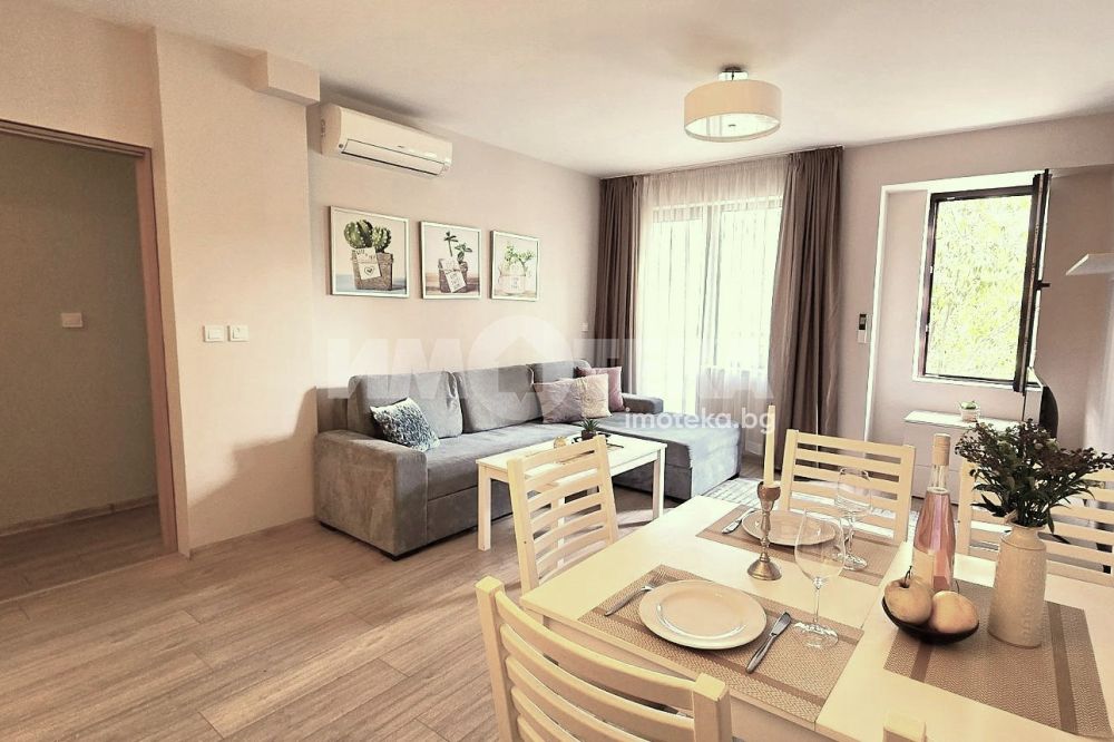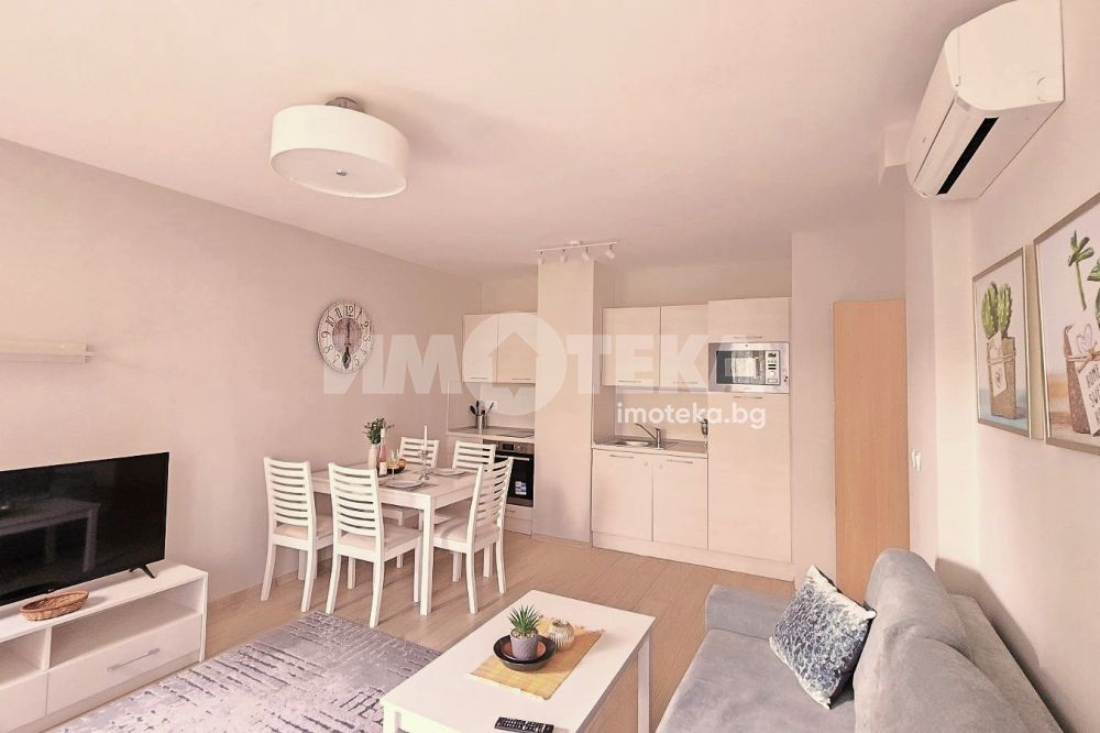 Тристаен, удобен, елегантно обзаведен апартамент, напълно оборудван, в нова и луксозна сграда, на метри от Морската градина. Състои се от слънчева и светла дневна с вградена кухня, две спални (всяка от които с двойно легло), баня с wc и отдеделн санитарен възел, перално помещение, функционално входно антре. И в трите стаи са поставени климатици от най-висок клас.