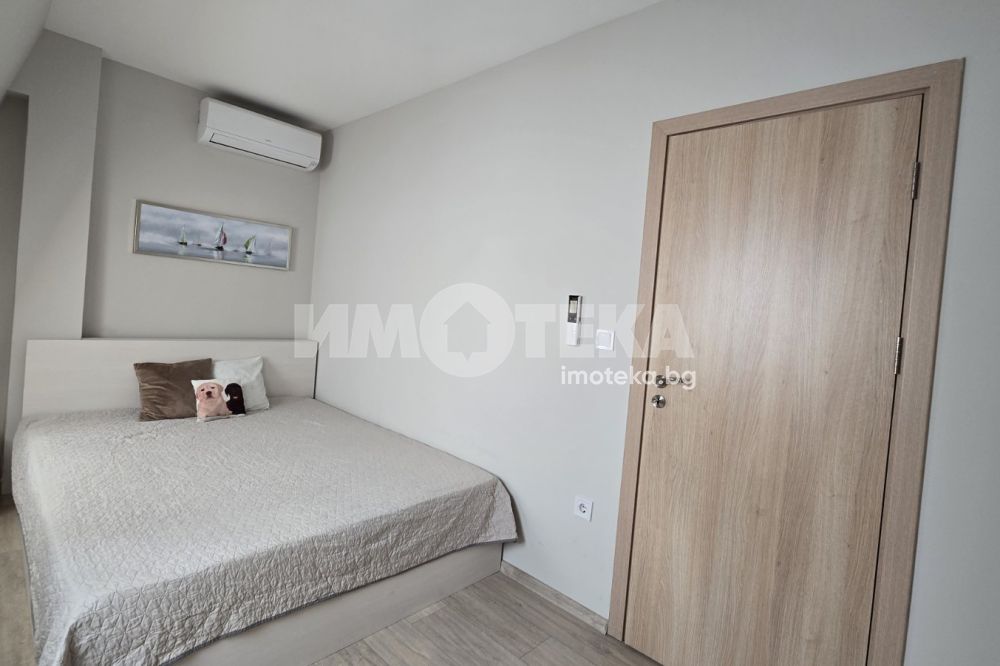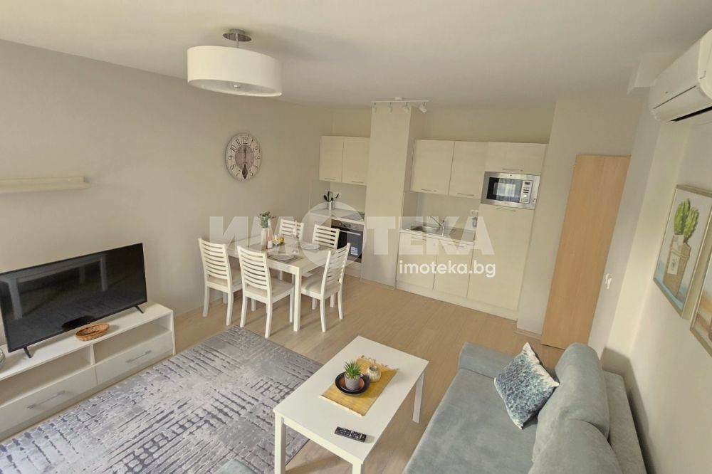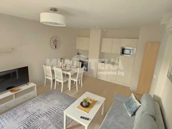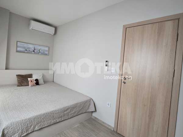 Тристаен, удобен, елегантно обзаведен апартамент, напълно оборудван, в нова и луксозна сграда, на метри от Морската градина. Състои се от слънчева и светла дневна с вградена кухня, две спални, баня с wc и отдеделн санитарен възел, перално помещение, функционално входно антре. И в трите стаи са поставени климатици от най-висок клас.