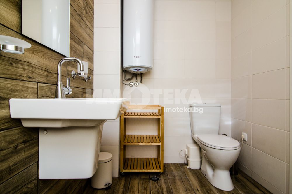бокс, две спални, баня с тоалет, отделно тоалет, перално помещение.