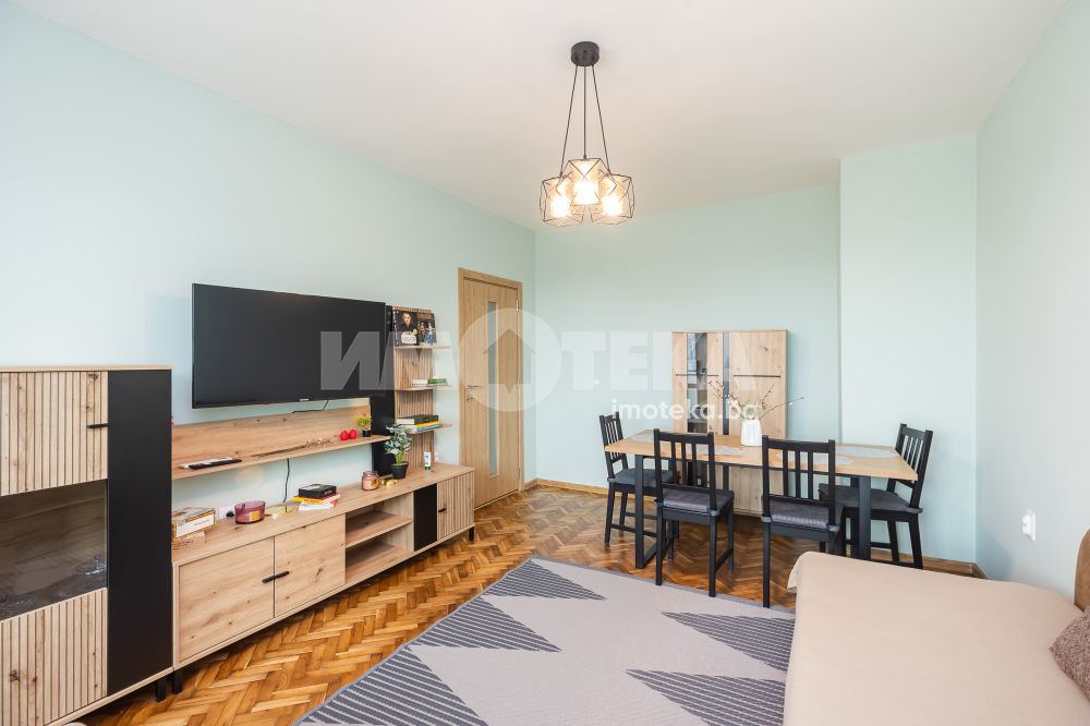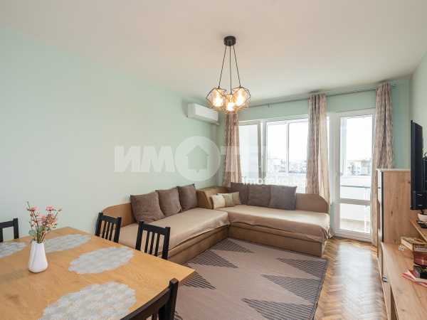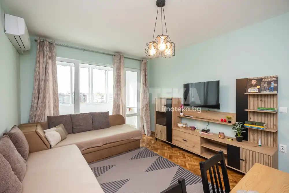 Чисто нов апартамент, след цялостен ремонт, търси своите първи наематели. Жилището е с външна изолация, подменени ел и ВиК инсталации, отоплява се с два чисто нови климатика, изцяло южен с много простор и приятна градска панорама. Разпределението е следното - -оборудвана вградена кухня, хол обзаведен функционално с легла на ъгъл, които са и като мека мебел, излаз на остъклена тераса, спалня, коридор, баня, отделно тоалет, килер в отлично състояние. Към апартамента може да се ползва мазе, и стаичка между етажите. Наемната цена включва интернет към А1!