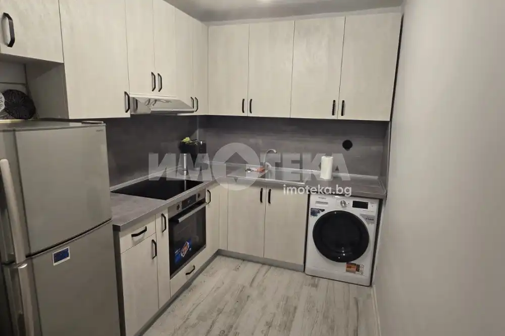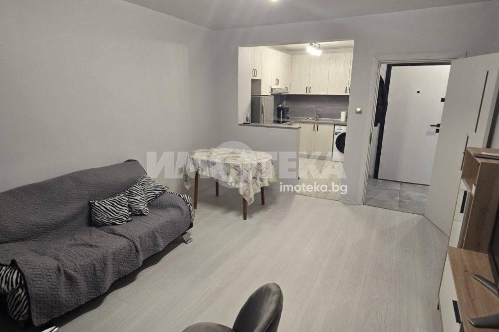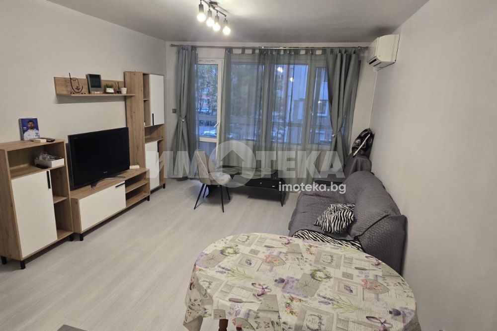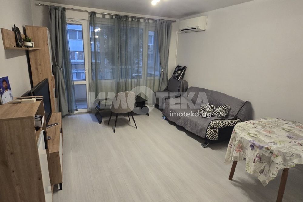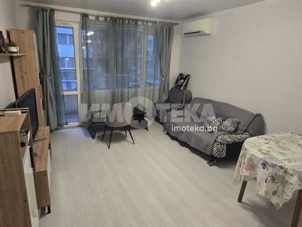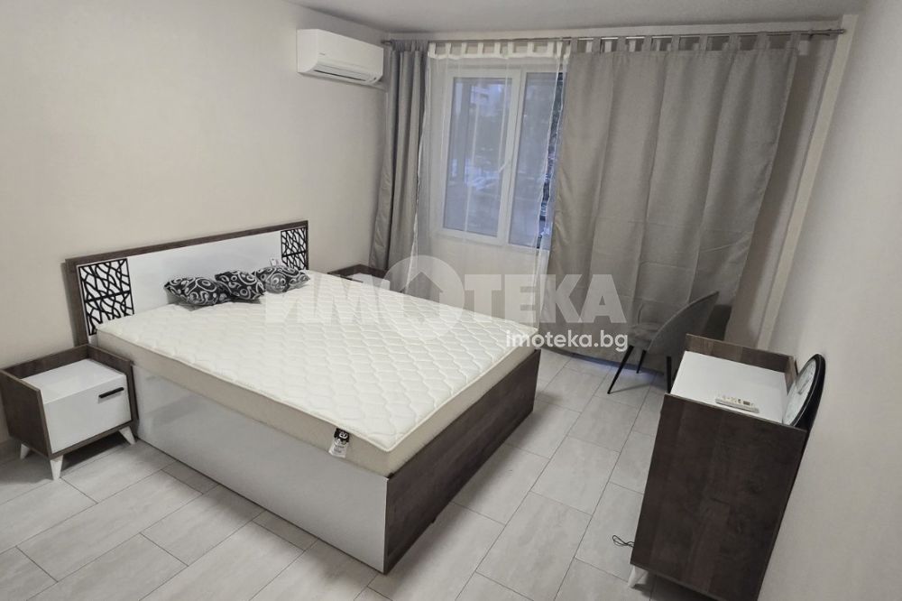 Предлагаме Ви обзаведен двустаен апартамент в района на Окръжна Болница.Имота се състои от дневсна с обособена кухнанска част, кът с мека мебел ,кът с маса за хранене.Спалня с легло спалня ,баня с тоалетна и една тераса.Имота се отоплява и охлажда посредством два климатика.