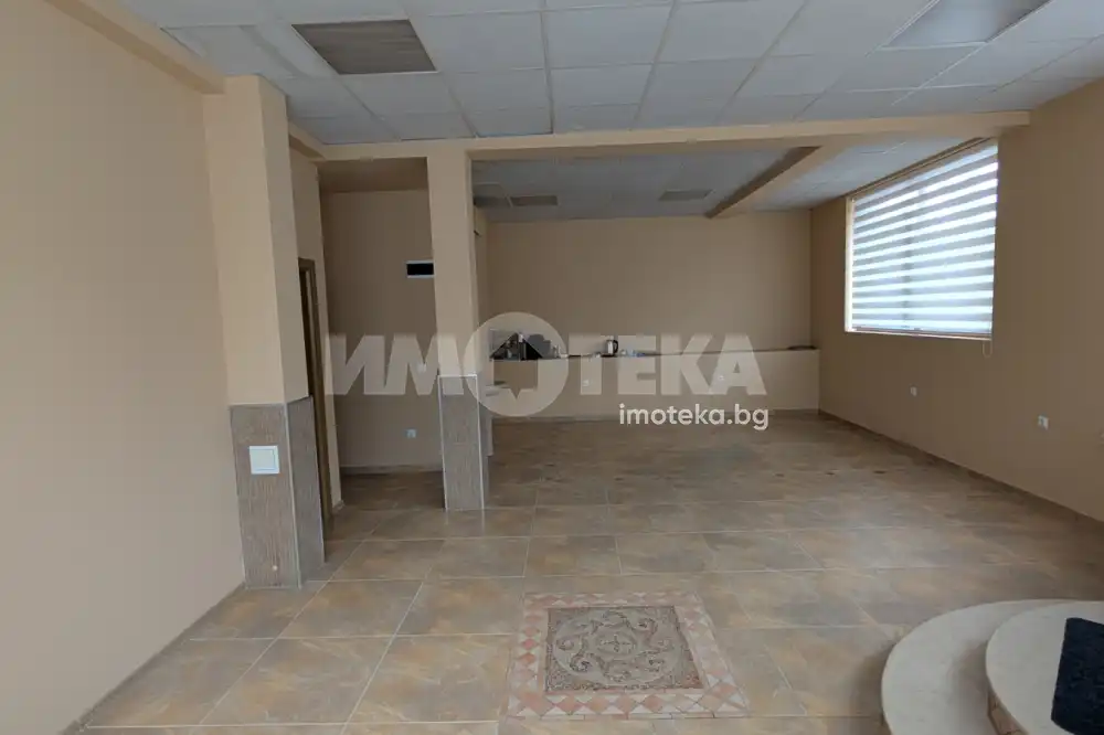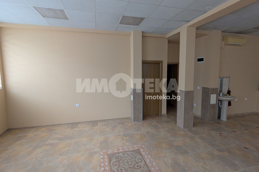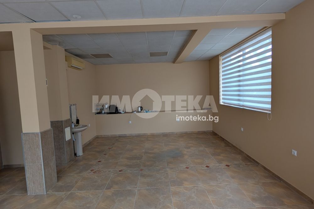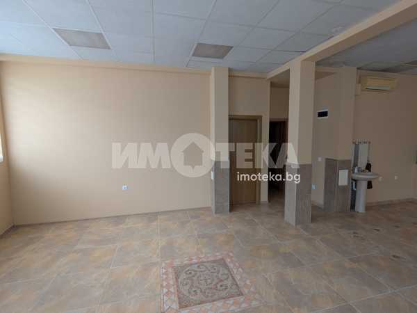 Отдаваме под наем партерно помещение с площ 44 кв.м. + склад (височина съответно 2.90 м. и 3.20 м.). Отоплението и охлаждането са решени с климатик. Има мивка с топла вода в помещението, както и санитарен възел.