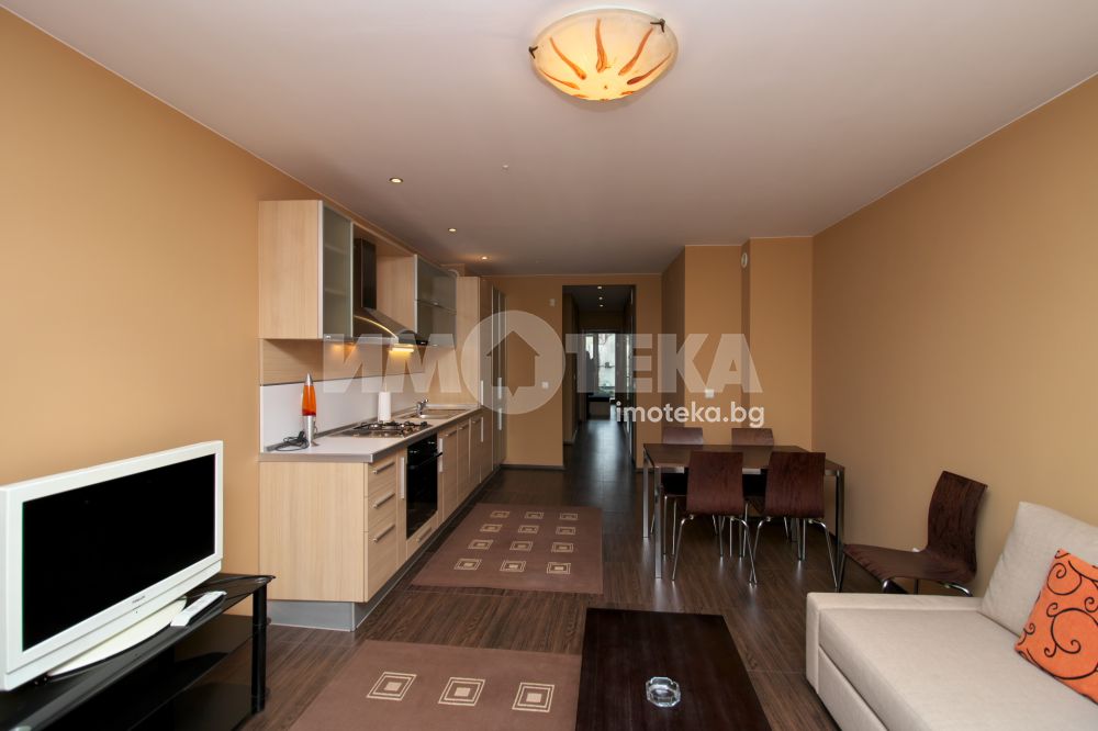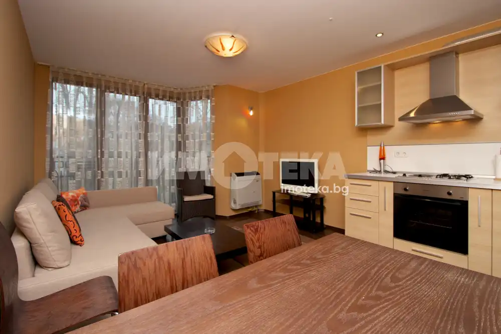 Двустаен луксозно обзаведен апартамент в близост до Морска градина,зад хотел Графити.Състои се от просторна дневна с модерна вградена кухня,оборудвана с бяла техника,вкл.съдомиялна машина,мека мебел;спалня с легло-спалня,гардероб;баня,тоалет,тераса.