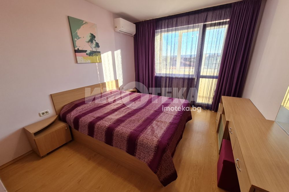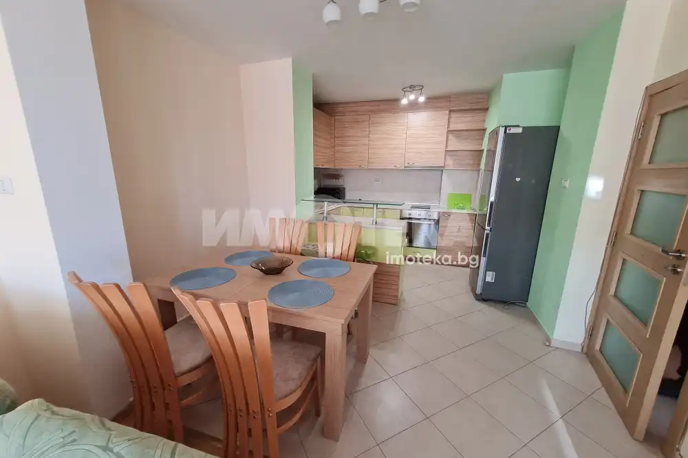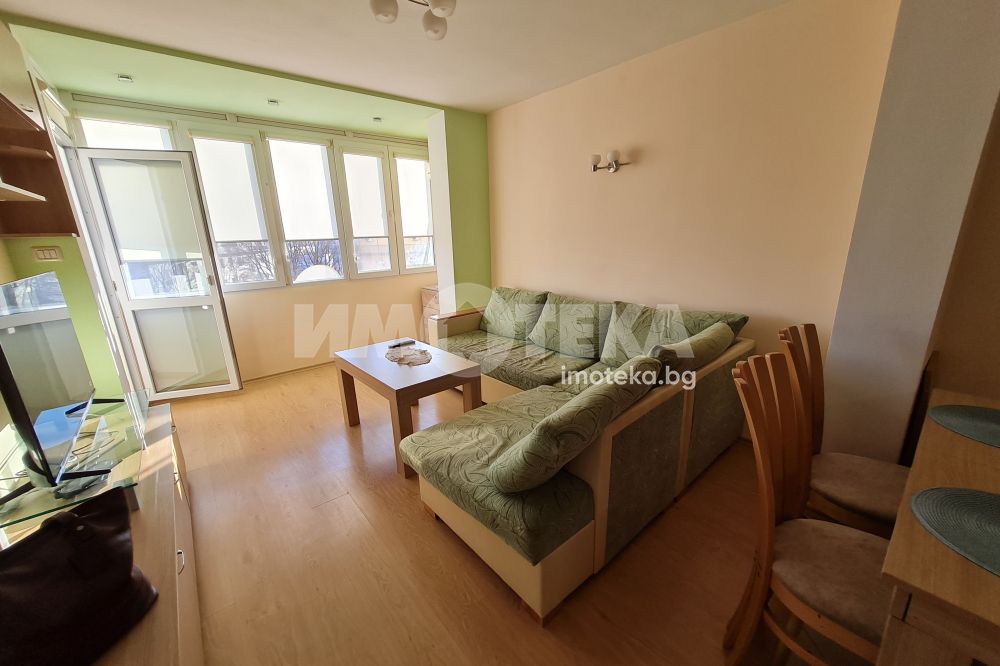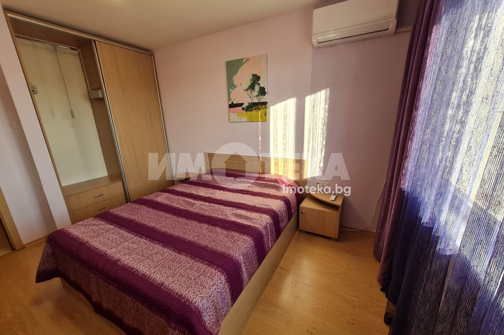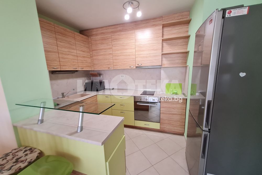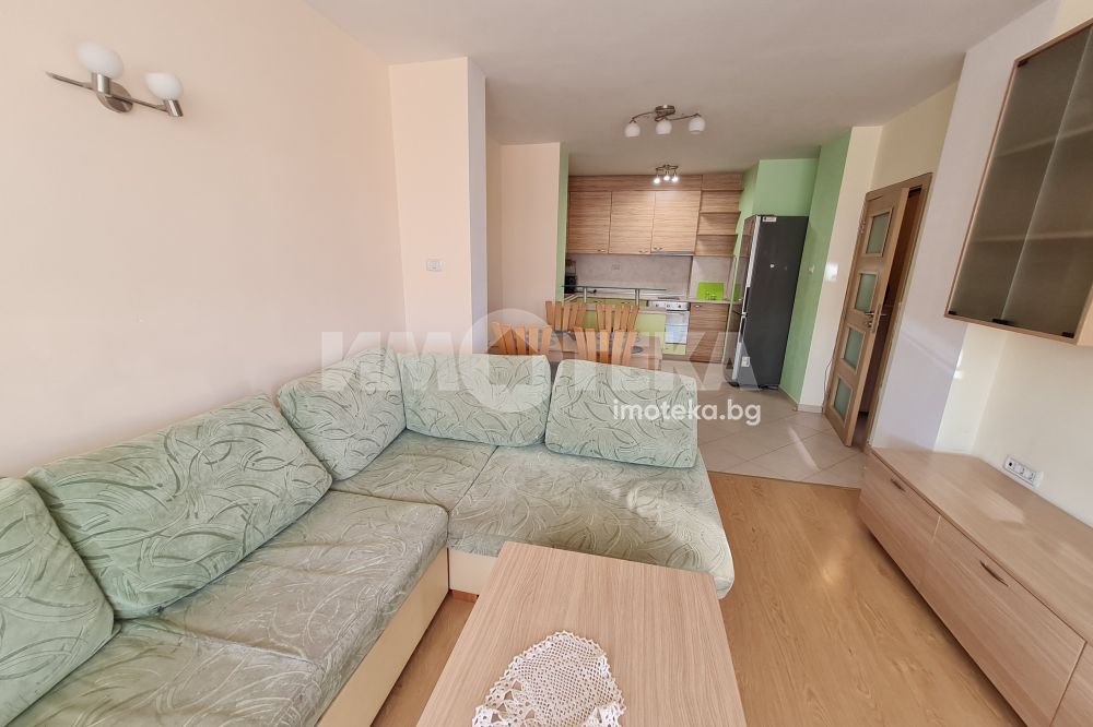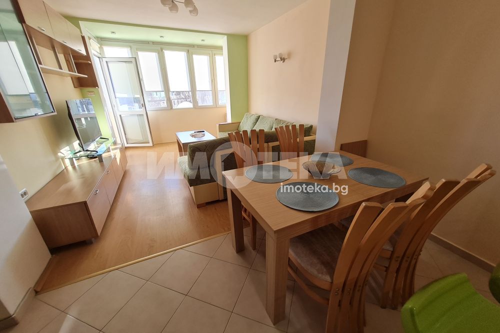 Двустаен отлично обзаведен апартамент в централната част на града.Състои се от просторна дневна с мека мебел,вградена кухня,оборудвана с бяла техника;спалня с легло-спалня,гардероб;баня-тоалет.