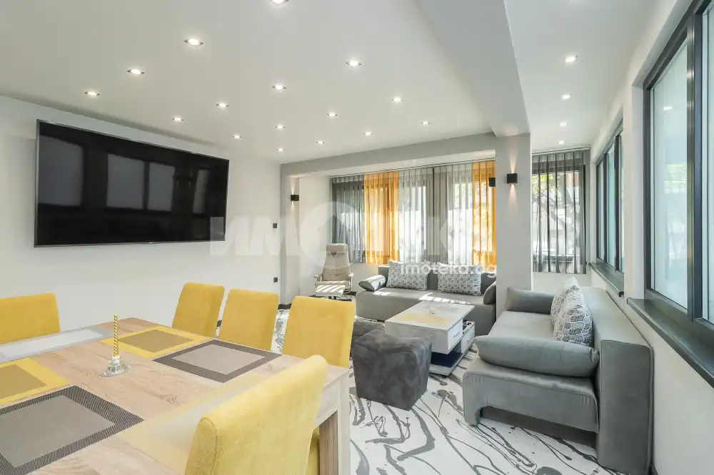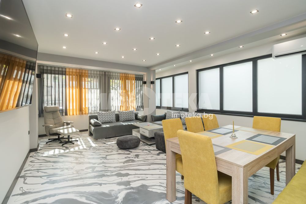 Предлагаме на вниманието Ви, изискан дом, разположен в идеалния център на град Варна. Жилището предлага всичко онова, което би задоволило вкусът и изискванията на клиенти с висок жизнен стандарт – функционалност, качество, стил. Апартаментът се състои от слънчева просторна дневна с трапезария, холна зона и обособена кухня, две спални и три сервизни помещения, баня с тоалет, тоалет и перално помещение. Към апартаментът има принадлежащи таванска стая (отдадена под наем), офис/кабинет със собствен санитарен възел и идеална част от двора 30 кв.м, която дава възможност за паркиране. Апартаментът се предлага напълно обзаведен и оборудван .