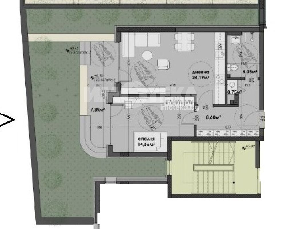 Освен терасата към апартамента, собствениците ще разполагат и със собствен озеленен двор.