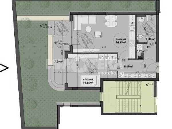 Просторен апартамент с параметри на стаите, както следва - всекидневна с кухненски бокс - около 24 м2, спалня - около 15 м2. Функзионален коридор, баня с тоалетна и мокро помещение.