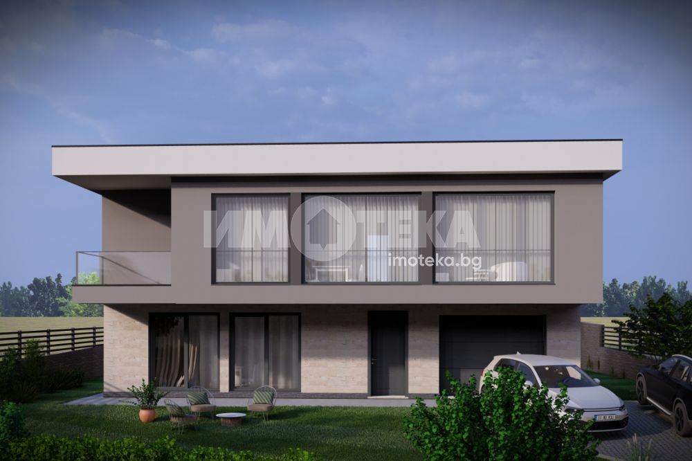 Нов проект на къща в кв. Изгрев, 500м от главен път. Къщата е на два етажа и има следното разпределение: