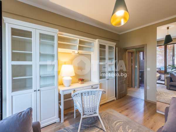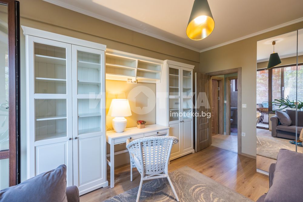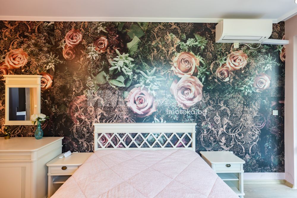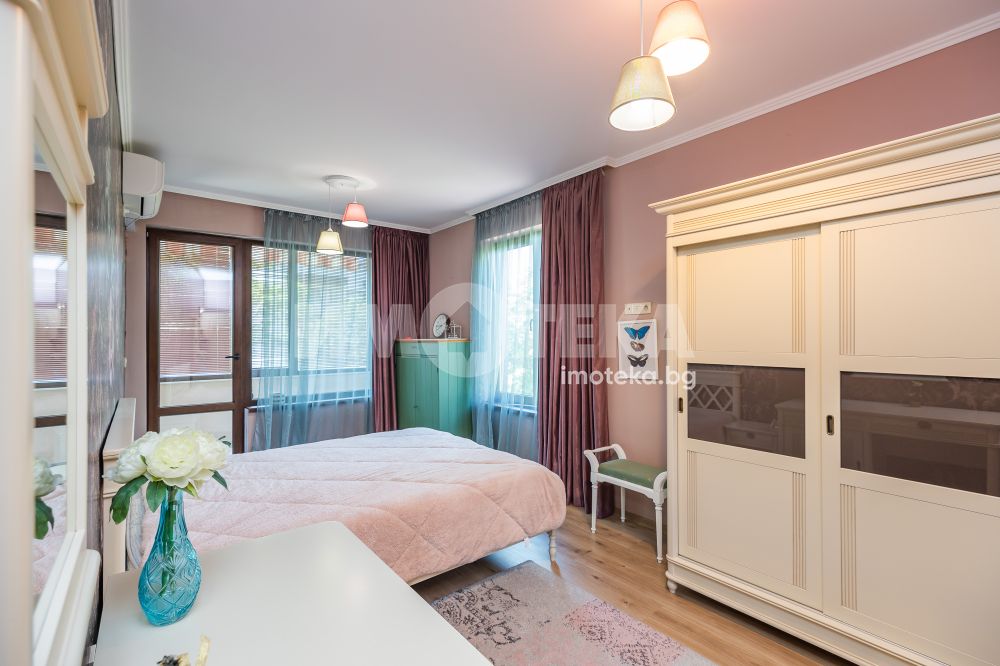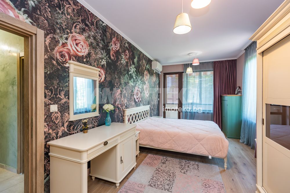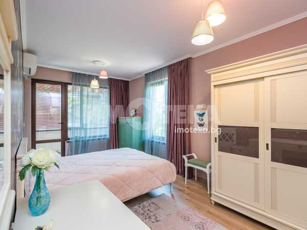 Луксозен и уютен нов дом, в градина пълна с рози, напълно обзаведен и оборудван и с всички удобства на съвременния начин на живот. Отлично проектиран, прекрасно аранжирана градина с автоматично напояване, зона за релакс с басейн в двора, открито барбекю, остъклена веранда, четири спални, четири бани, камина и подово отопление в дневната и в две от баните, соларна система, климатици във всяка стая, сауна с предверие, с душ и релакс зона, пет паркоместа в двора - пред и зад къщата.