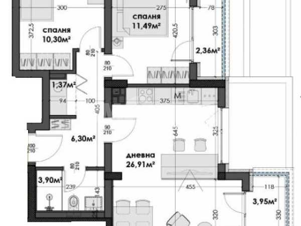 Представяме ви прекрасен тристаен апартамент със слънчева всекидневна 27 м2, с излаз на тераса 4 м2; родителска спалня със самостоятелна тераса; втора спалня.; баня с тоалетна в едно; мокро помещение.