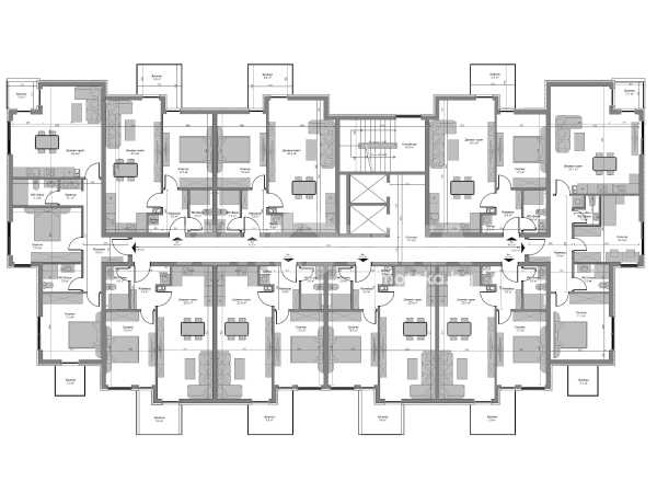Жилищата започват от втори етаж и са идентични по вертикалата нагоре.