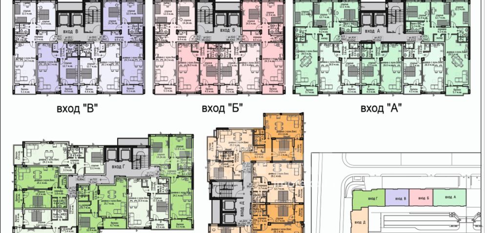 За продажба има разнообразие от двустайни, тристайни и многостайни апартаменти. В продажба са и подземни паркоместа.