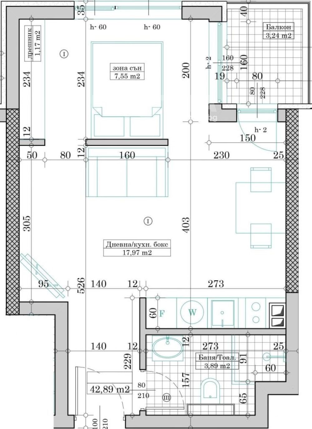 Уютен двустаен апартамент с функционално разпределение в нова сграда. Жилището се състои от дневна с кухненска част, спалня, дрешник, балкон, баня и тоалет. С опция за покупка на Паркомясто!