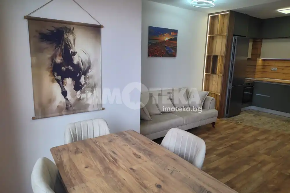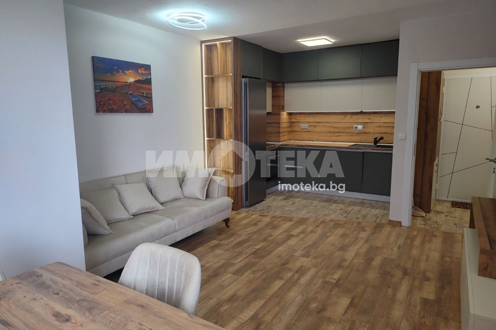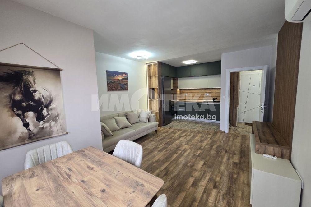 Предлагаме 2 стаен апартамент в нова сграда, актувана през 2024г Имота се състои от антре, дневна и спалня с излаз на обща тераса, панорама на запад. Към имота има и партерен гараж с отделен идентификатор и партида за ток на цена от 32 000е . Апартамента е с чисто ново обзавеждане и оборудване. Има и изба към имота.