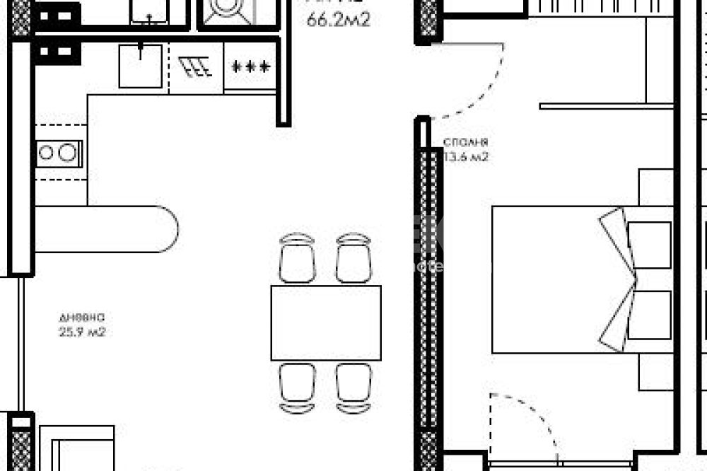 * Двустайни апартаменти от 62 до 82 кв. м.