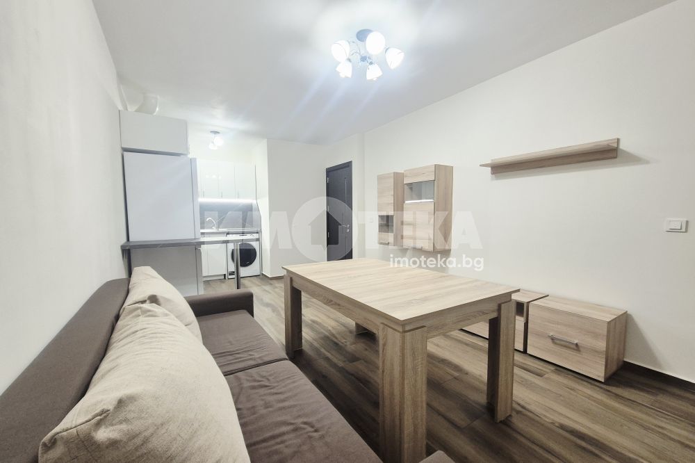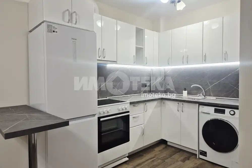 Двустаен апартамент с ново обзавеждане и външно паркомясто. Жилището се състои от дневна с кухненска част - бяла техника, мека мебел. Спалня - обзаведена. Баня с тоалет. Остъклена тераса. Централно парно.