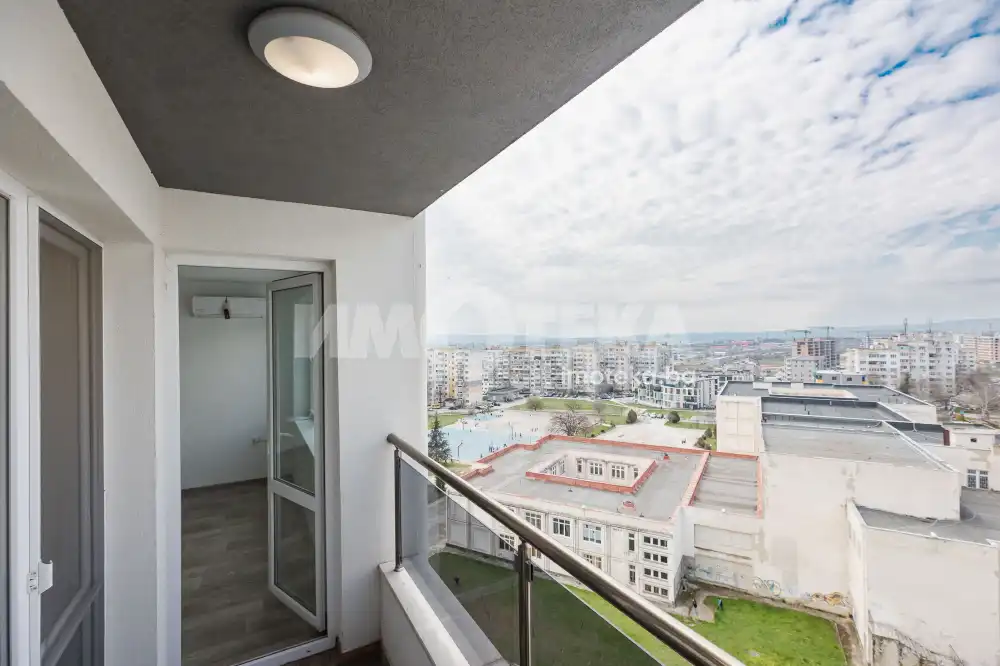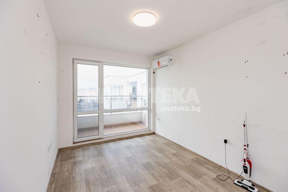 Жилището се продава необзаведено, с монтирани климатици в двете стаи, входна блиндирана врата и домофонна система. Стените са боядисани, пода е с покритие - ламинат.