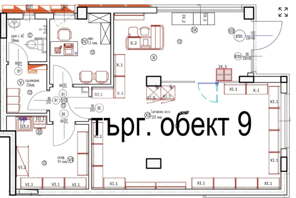 - фунционално разпределени площи