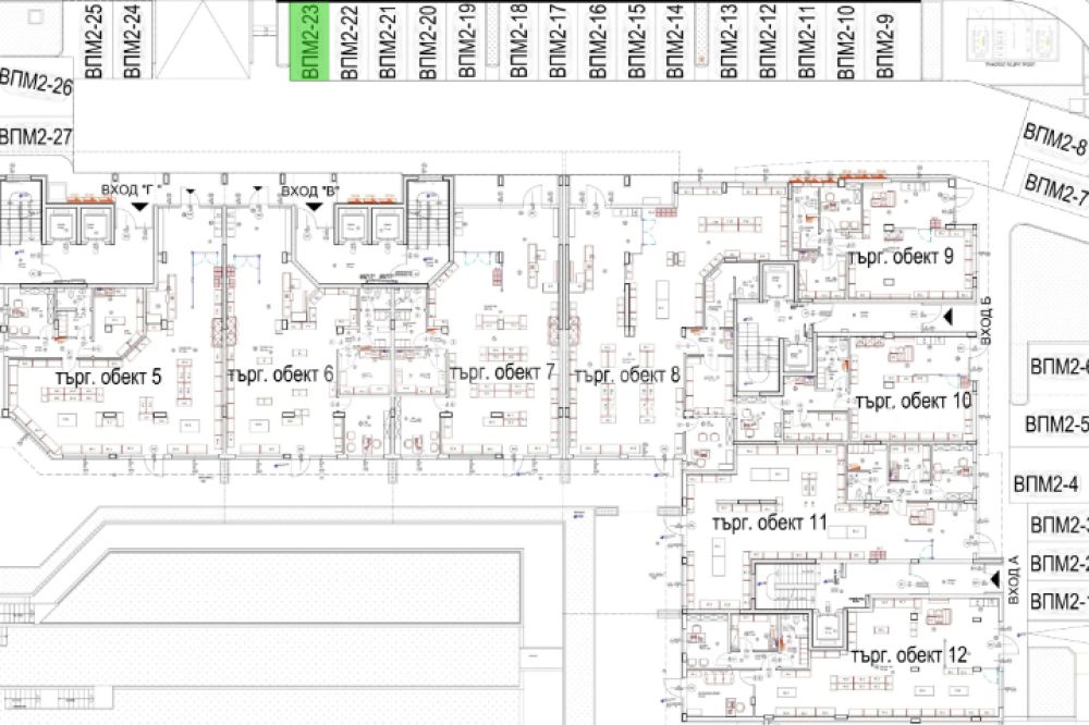 В сградата имаме и други търговски помещения с площ от 105 кв.м до 1078 кв.м