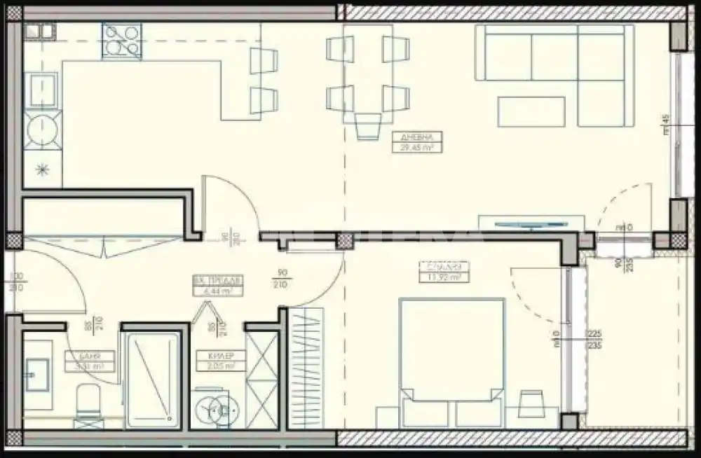 Двустаен апартамент в нова сграда ! Светлина, простор, уют! Жилището разполага с голяма дневна, спалня, килер, балкон и тераса. С опция за покупка на паркомясто!